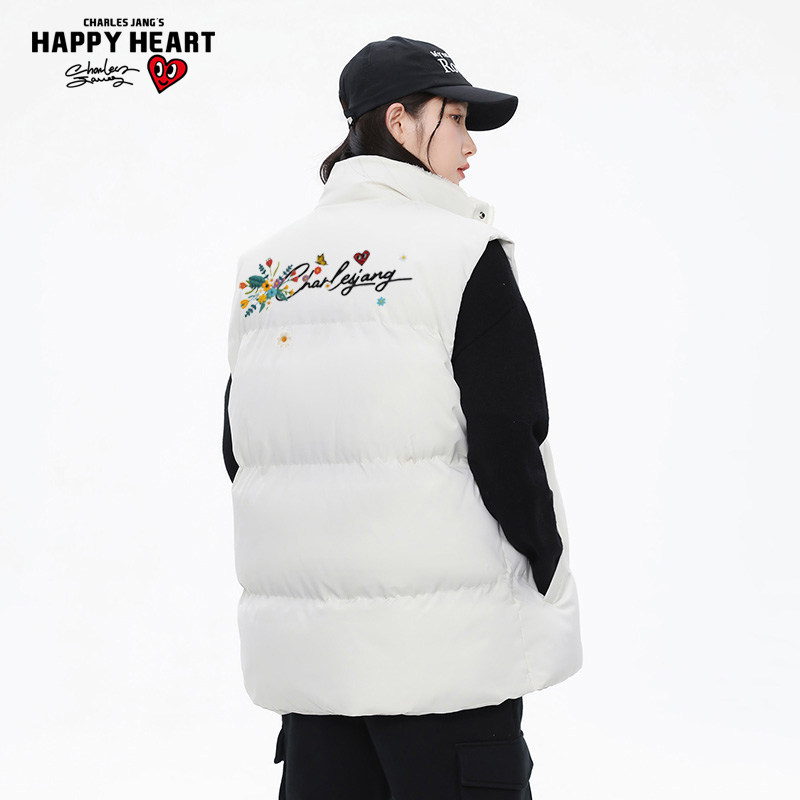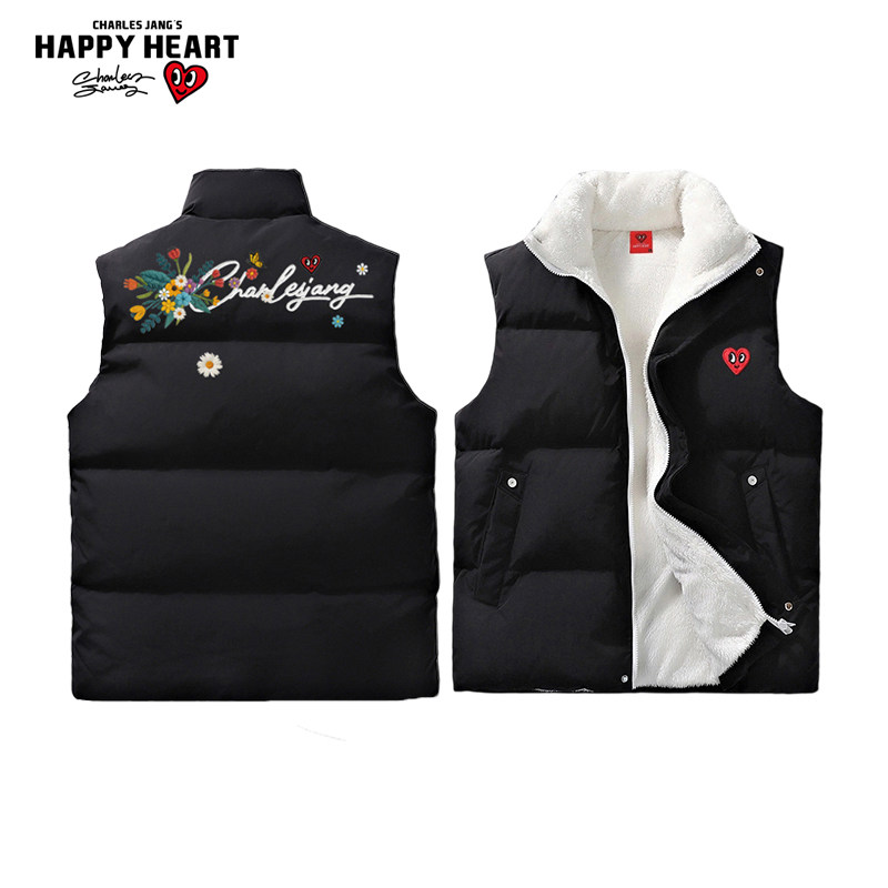 天猫查尔斯桃心花卉印花羊羔绒马甲男秋冬季防寒保暖情侣立领坎肩棉衣