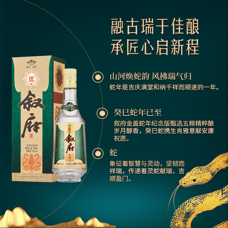天猫【新品】叙府蛇年生肖纪念酒52度500ml礼盒装浓香型白酒收藏纪念