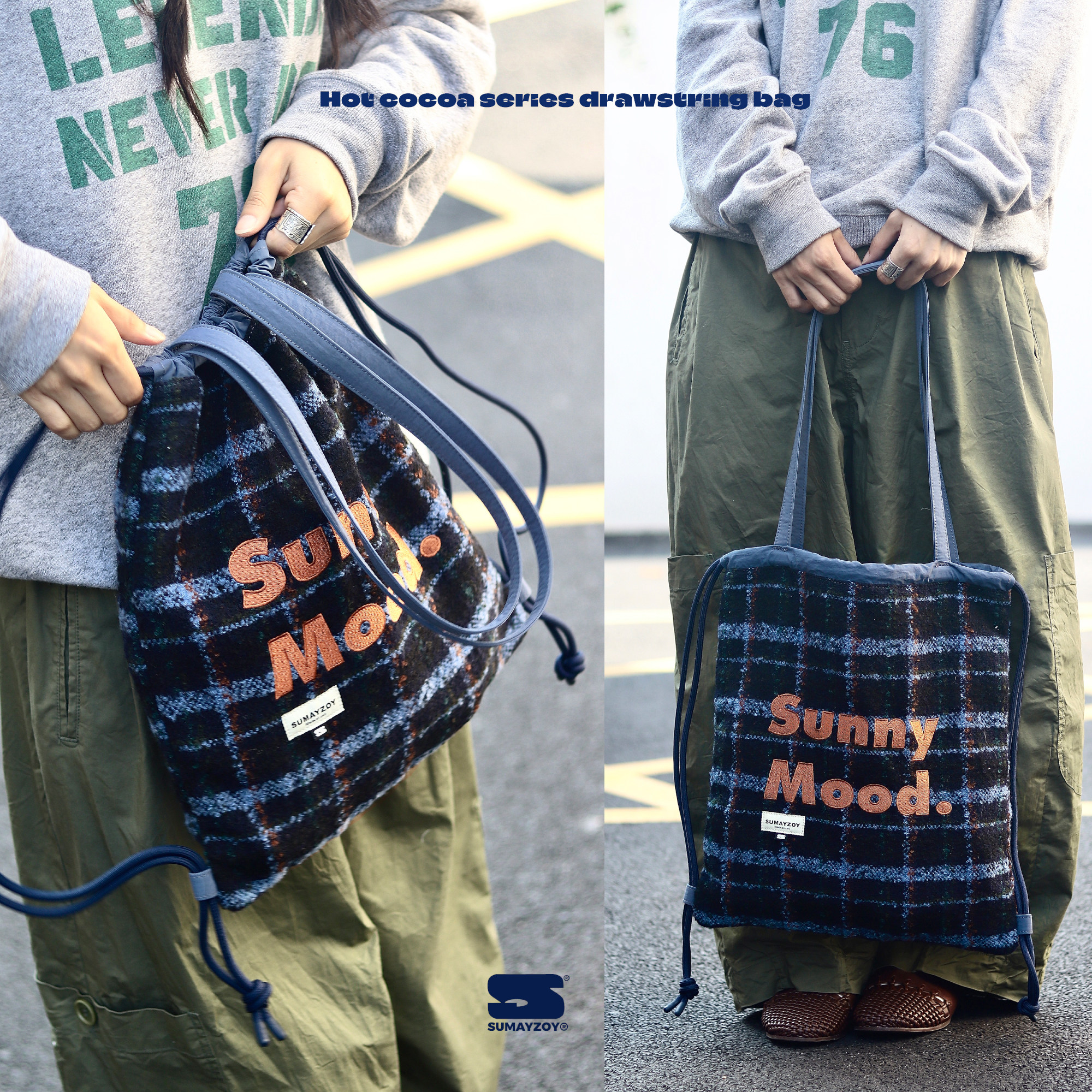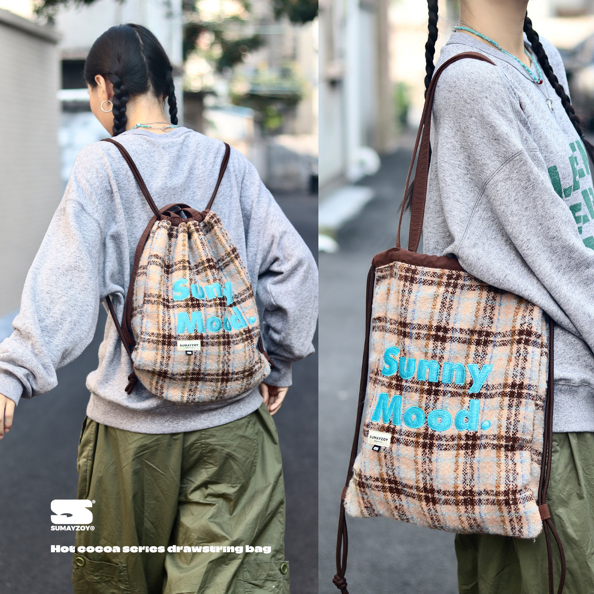 SUMAYZOY抽绳包是一款融合复古学院风与美式休闲风格的毛绒单肩背包,采用经典格纹设计,兼具时尚与实用。包身选用柔软亲肤的毛绒材质,触感舒适,视觉温暖,适合秋冬季节搭配。束口抽绳设计方便开合,安全又随性,可调节肩带满足不同身高需求。小巧轻便的版型既能作为单肩包日常出街,也可切换为双肩背法,轻松应对上学、通勤或短途出行。多隔层结构贴心收纳小物,是学生党和潮流青年的理想选择。SUMAYZOY以细节诠释个性,让复古格纹焕发新生,展现独特美式校园魅力。
