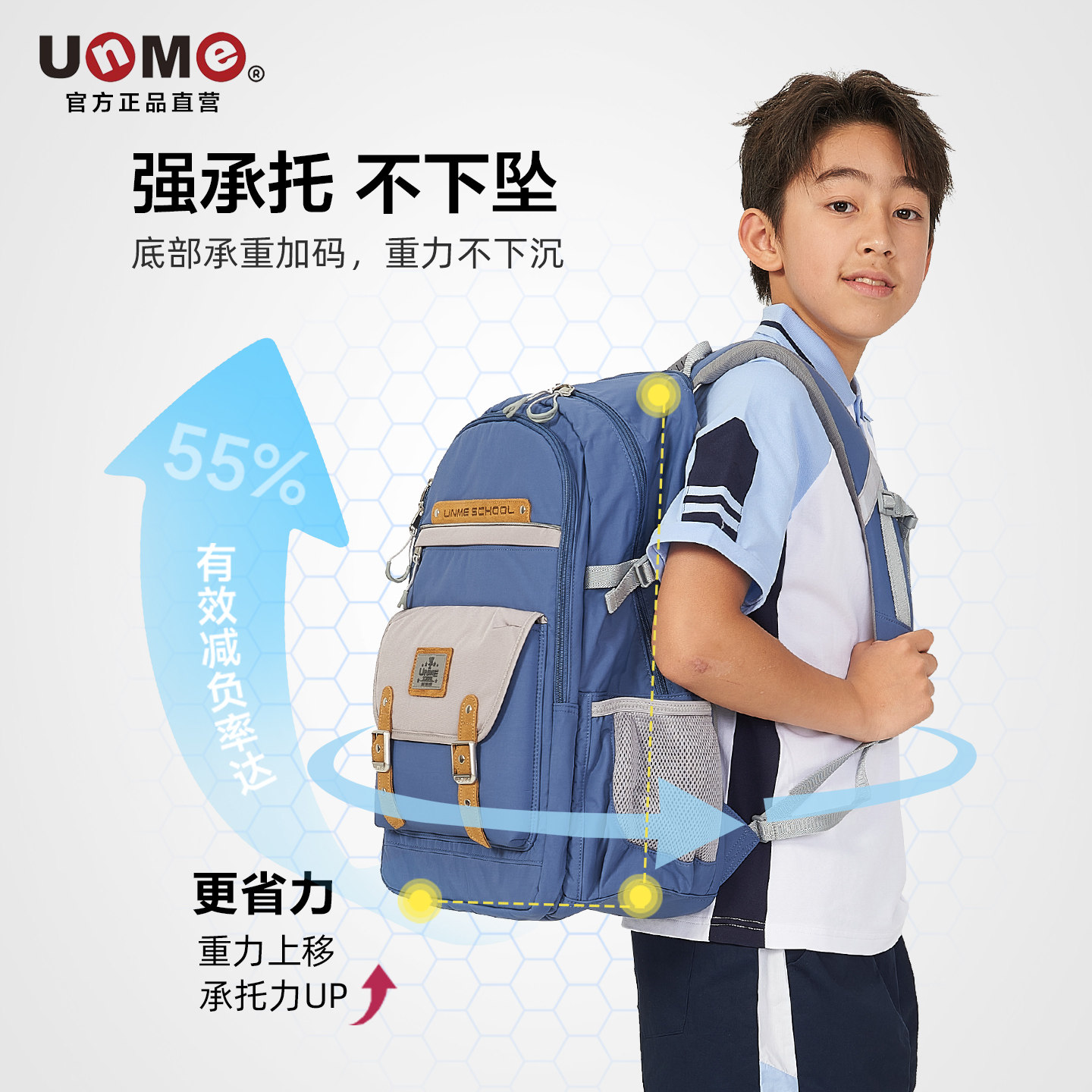 Unme初中生书包专为3-9年级学生设计,男女通用,兼顾大容量与减负护脊功能。采用人体工学S型肩带与加厚透气背垫,有效分散肩部压力,呵护脊椎健康。多层分隔收纳设计,轻松容纳课本、文具及生活用品,提升整理效率。优选超轻耐磨面料,整体重量仅约0.8kg,减轻背负负担。反光条设计保障夜间出行安全。外观简约时尚,配色清新,适合校园日常使用。Unme致力于为学生提供舒适、安全、实用的学习伴侣,让每一次背起书包都成为轻松愉快的开始。