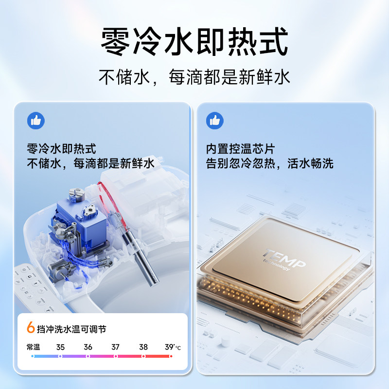 【补贴20%】智米智能马桶盖,升级如厕体验。采用即热式恒温冲洗技术,活水即热不等待,避免储水反复加热,更节能卫生。配备抗菌加热座圈,支持多档温度调节,四季舒适贴合。喷头自清洁+银离子抗菌材质,有效抑制细菌滋生,守护家人健康。缓降盖板设计,闭合安静无噪音,延长使用寿命。支持多模式冲洗(臀洗、妇洗、移动洗等),力度可调,洁净更贴心。安装便捷,适配多数普通马桶。现享20%官方补贴,性价比超高,让智能健康生活触手可及。智米,用科技重新定义舒适日常。