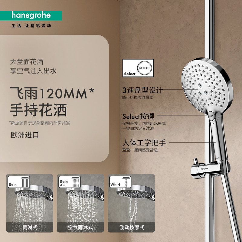 汉斯格雅hansgrohe经典飞雨360大顶喷恒温浴缸龙头淋浴花洒官方