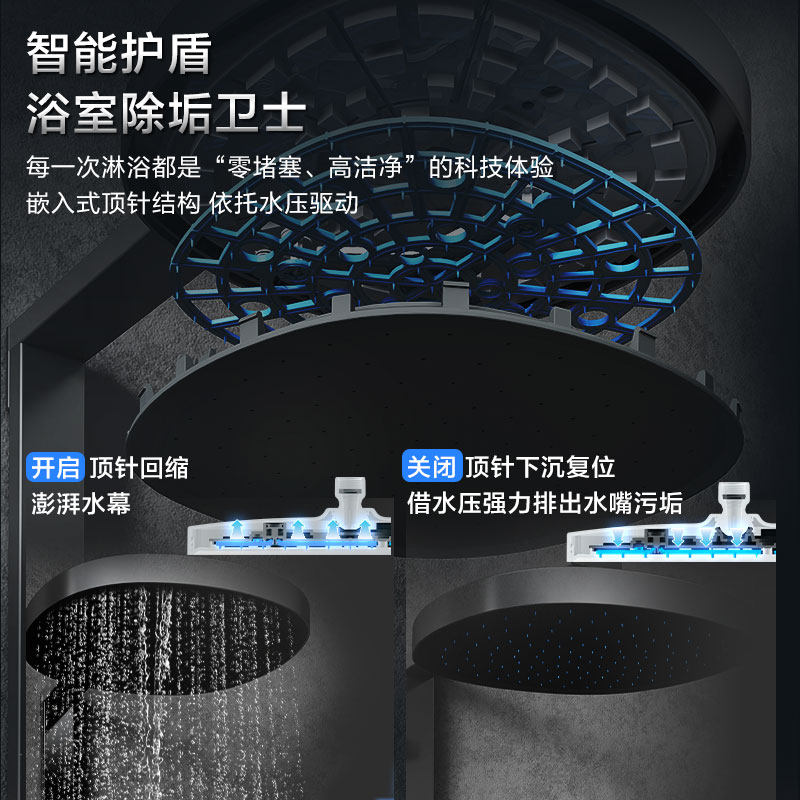 摩恩星舰花洒套装融合现代美学与实用功能,采用钢琴按键式大平台设计,操作直观便捷,触感顺滑。花洒主体配备大面积置物平台,可轻松放置洗浴用品,提升淋浴体验。枪灰色外观简约大气,适配多种浴室风格。套装包含顶喷、手持花洒及恒温混水阀,出水均匀细腻,支持多模式切换,满足不同沐浴需求。混水阀精准控温,防烫设计保障安全,持久耐用。整体采用优质材质,防锈抗垢,易于清洁。摩恩星舰花洒套装以人性化设计与高端质感,为用户打造舒适、便捷的私密洗浴空间,是现代卫浴的理想之选。