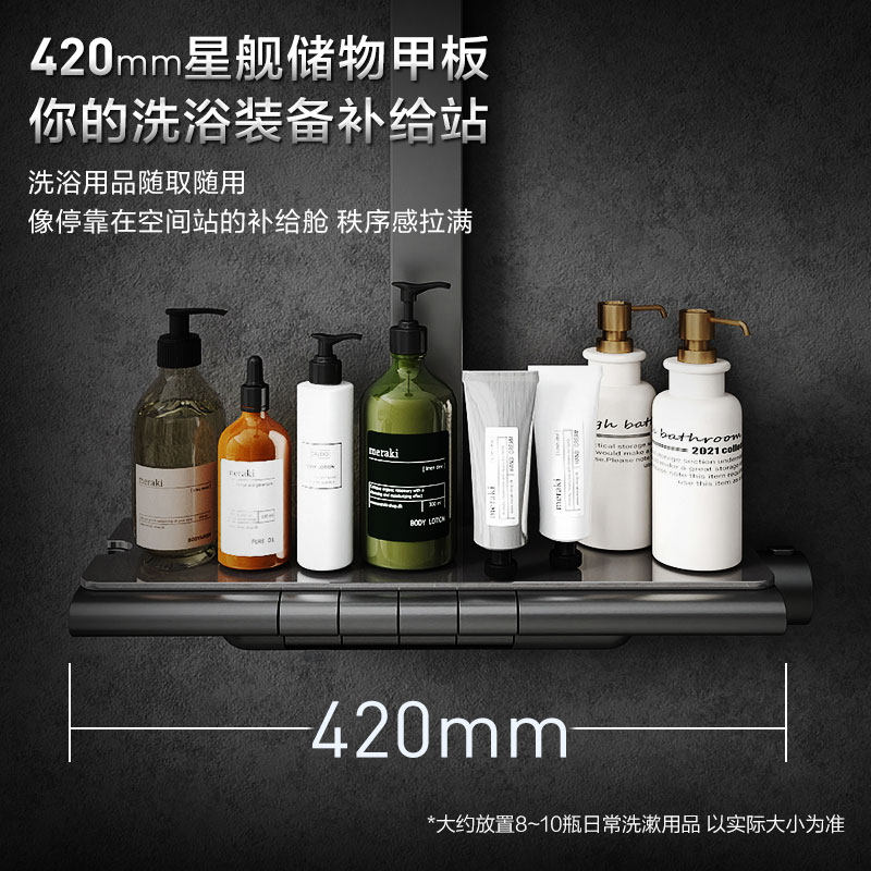天猫摩恩星舰花洒套装钢琴按键大平台置物花洒枪灰色混水阀淋浴花洒
