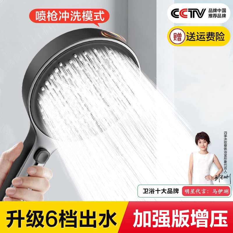 天猫四季沐歌增压花洒喷头超强加压手持淋浴头套装浴室家用增压花洒头
