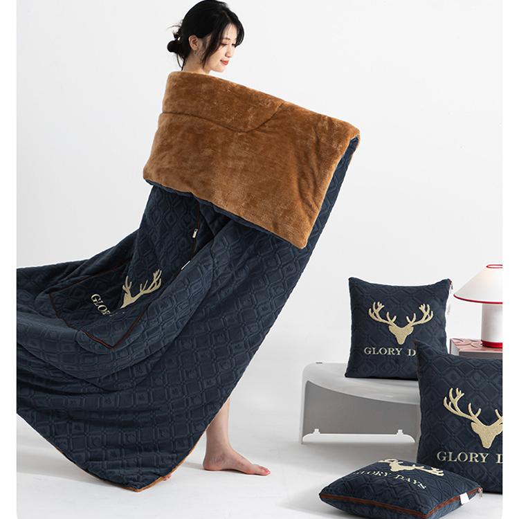A类简约纯色抱枕被子两用加厚加绒二合一车载靠垫办公室午睡毛毯