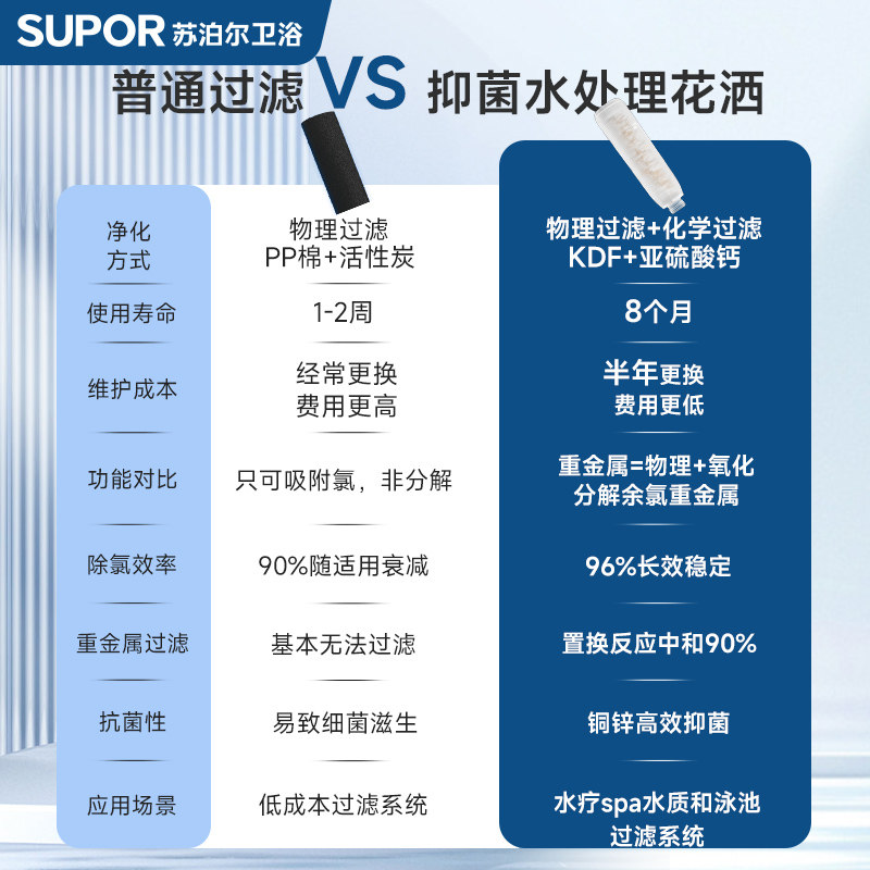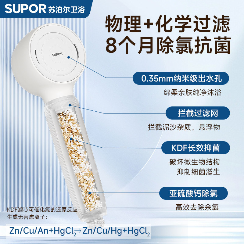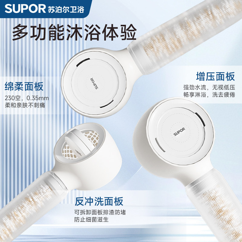 天猫SUPOR/苏泊尔增压过滤花洒喷头KDF抗菌除氯净水淋浴头手持莲蓬头