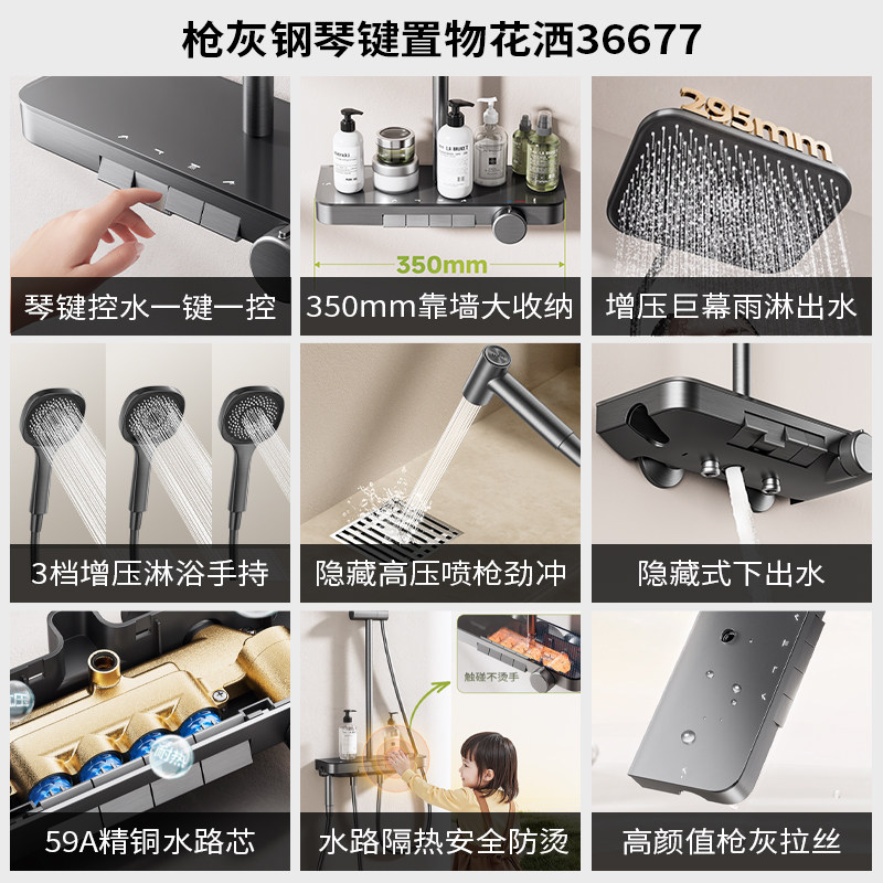 天恒洁钢琴按键恒温防烫淋浴花洒套装升降加宽置物除垢全系列Y55