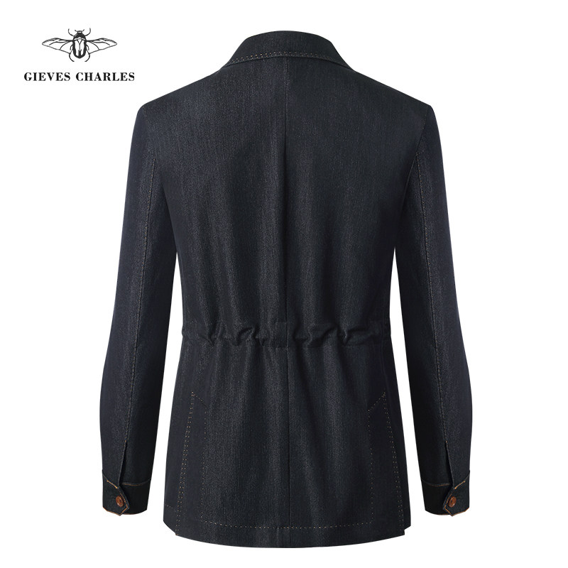 天猫GIEVES CHARLES牛仔夹克休闲西装外套男士高端复古上衣猎装西服男