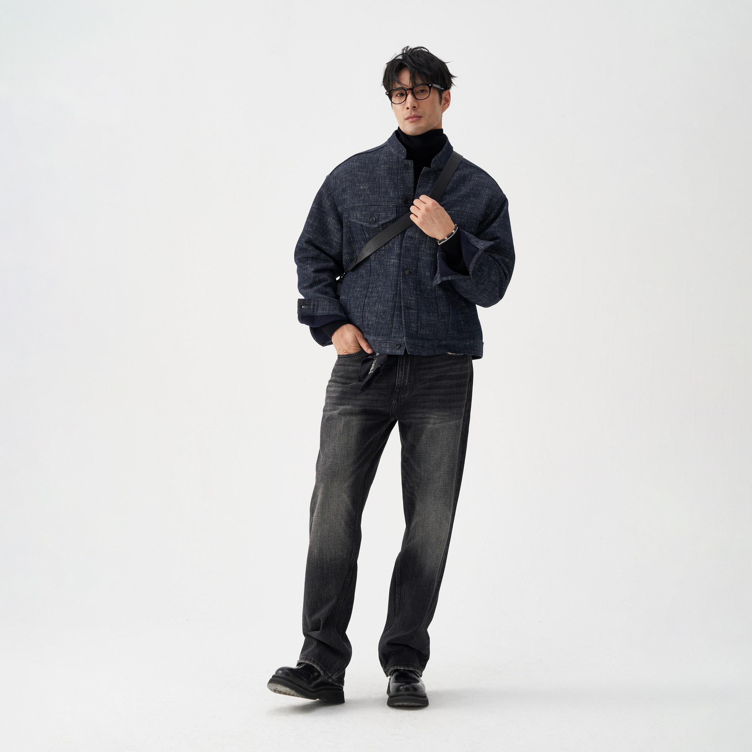 LEZORA双层厚织羊毛牛仔设计师立领卡车司机夹克,专为秋冬男士打造,融合经典工装美学与现代设计感。采用高品质双层厚织羊毛牛仔面料,保暖性出众,兼具挺括质感与舒适穿着体验。立领设计利落有型,防风实用,凸显都市型格。经典卡车司机版型,宽松剪裁便于活动,袖口与下摆罗纹收口,增强保暖效果。前襟金属纽扣开合,搭配多口袋设计,兼顾实用与装饰性。无论是搭配毛衣还是卫衣,都能轻松驾驭秋冬街头风格,是追求品质与风格的男士不可或缺的时尚单品。
