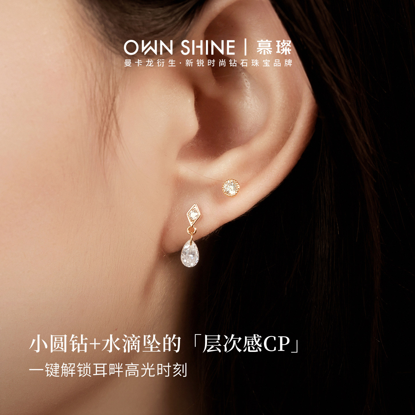 天潮宏基至简18K金钻石耳钉1stbling浪漫之约耳饰轻奢显大礼物单只