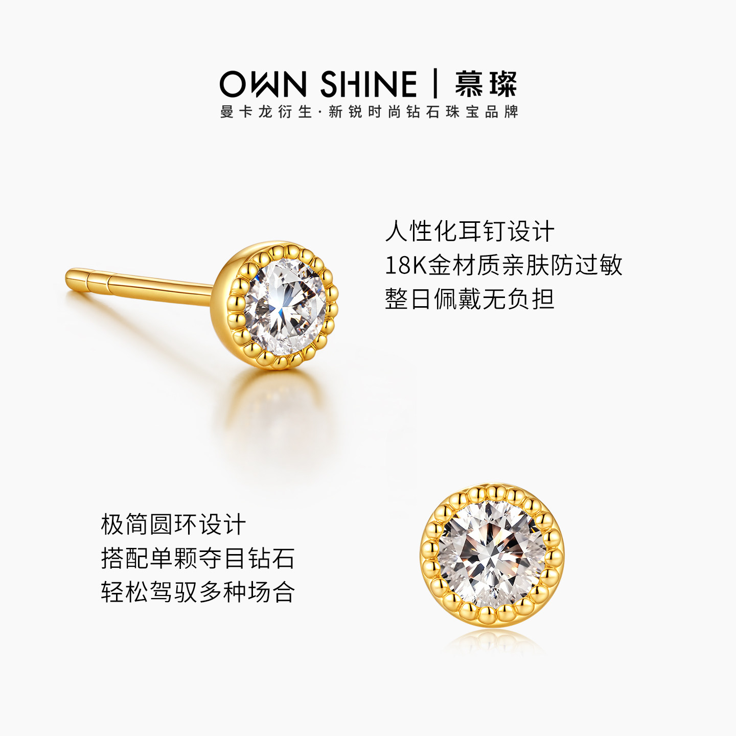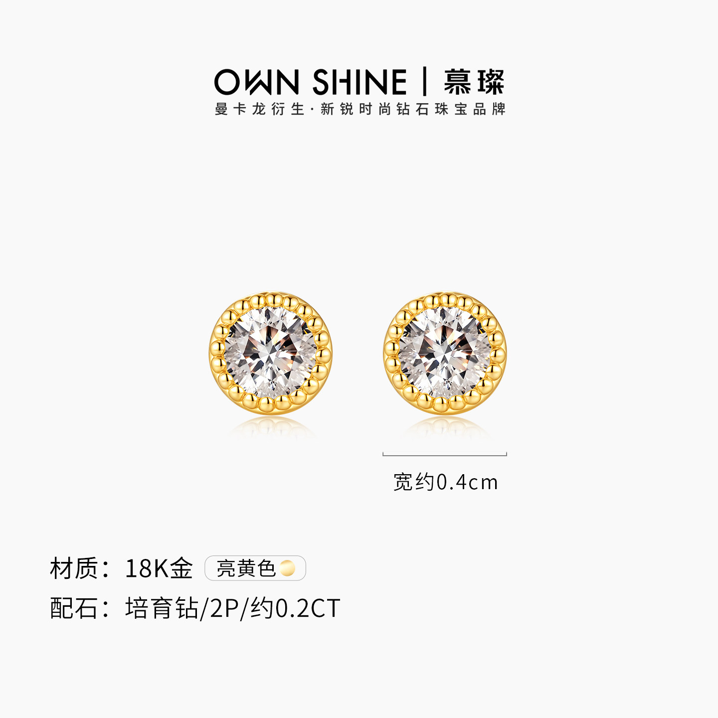 天猫【38节礼物】曼卡龙/慕璨圆镜18k黄金泡泡耳钉20分培育钻耳饰简约