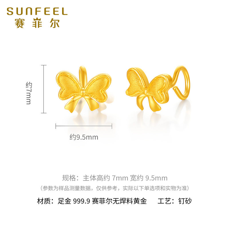 天猫赛菲尔黄金耳饰女蝴蝶结足金999.9甜美范耳钉耳钩送女友生日礼物