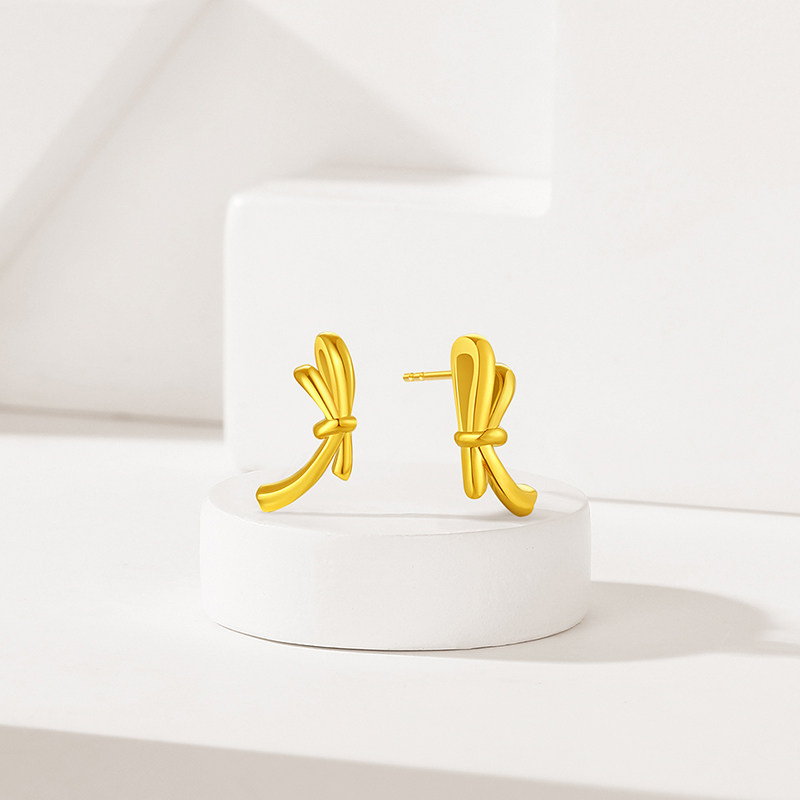 天猫潮宏基至简黄18K金耳钉彩金耳饰蝴蝶结职场通勤送女友妇女节礼物