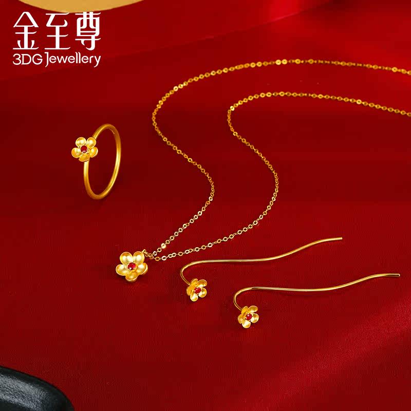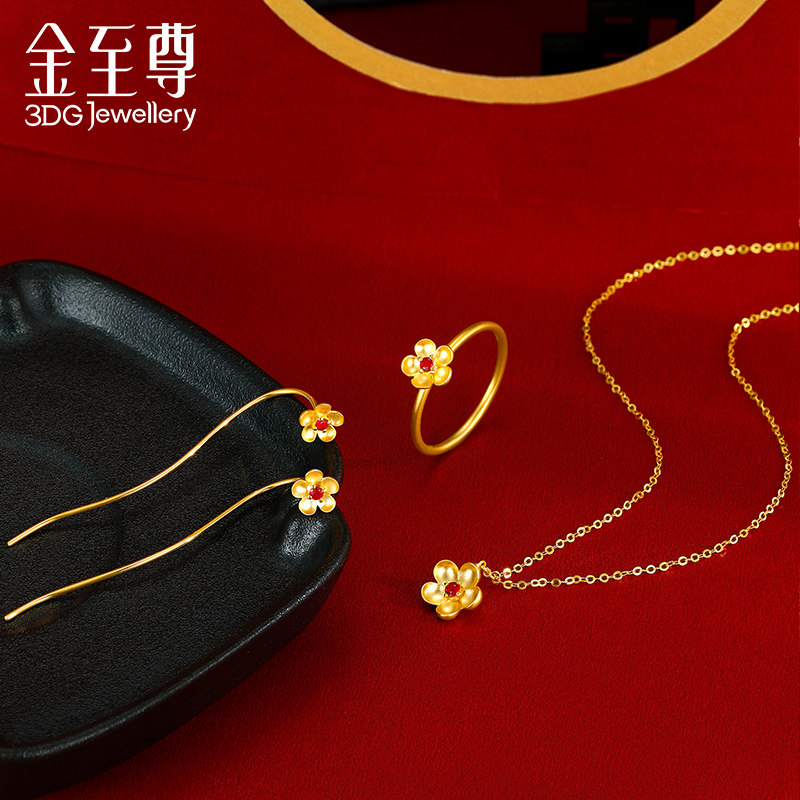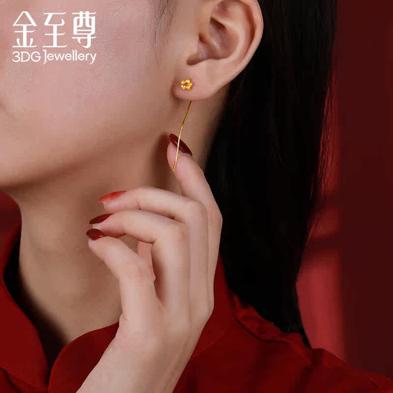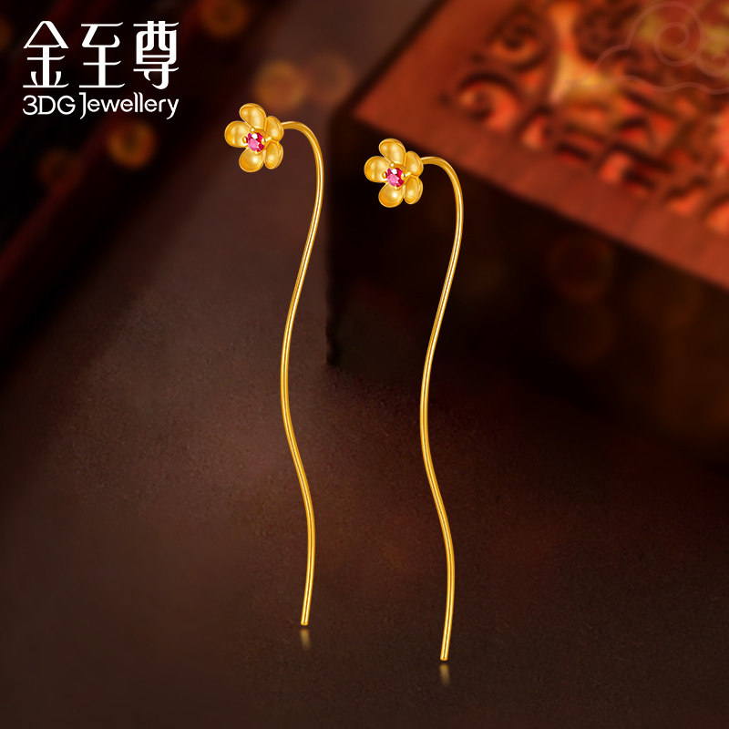 天猫金至尊至尊金国潮耳线18k金红宝石耳饰正品