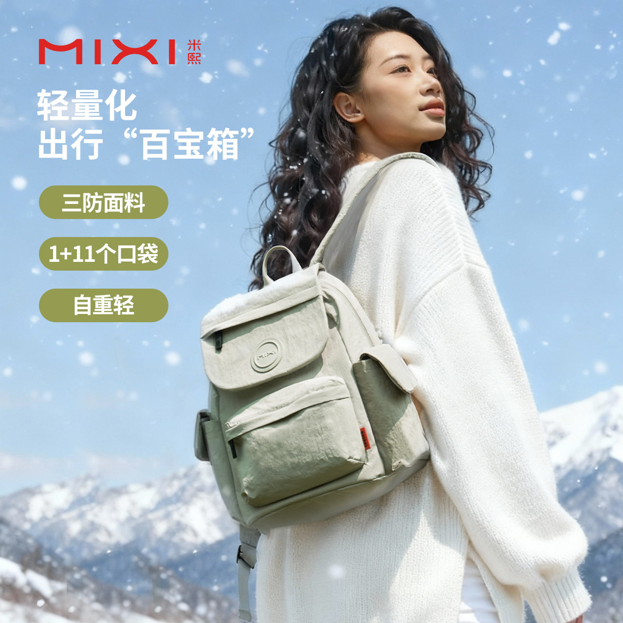 天猫米熙2026新款轻便双肩包女旅游防水户外大容量电脑书包旅行小背包