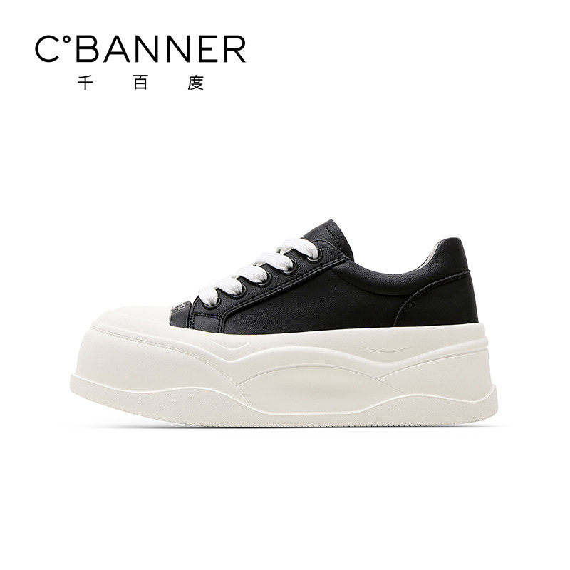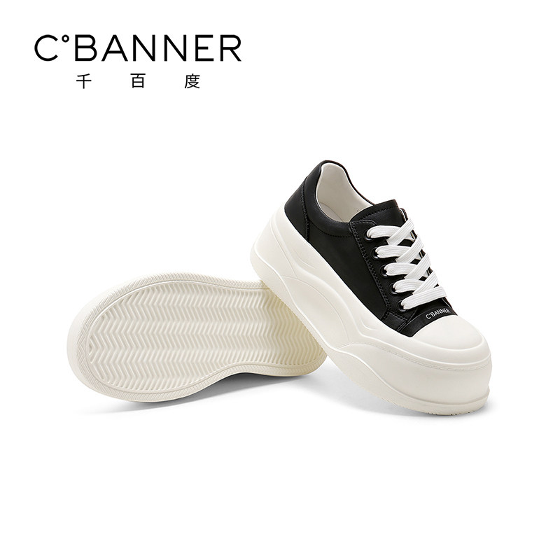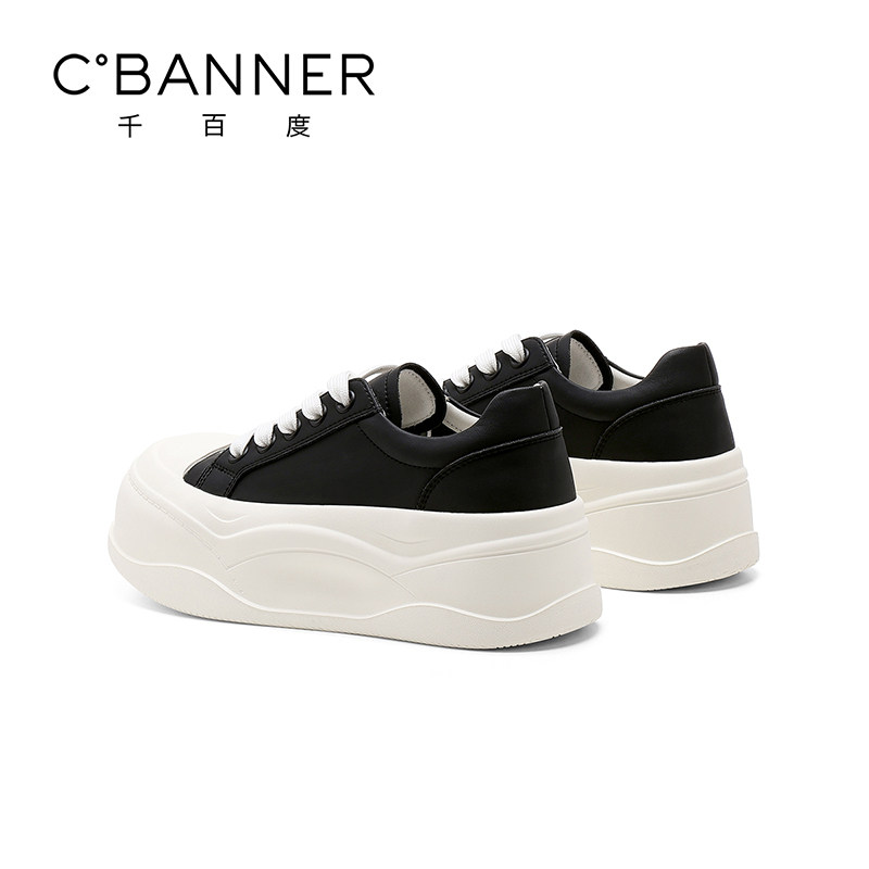 天猫千百度厚底小白鞋女春季新款圆头增高时尚板鞋日常通勤百搭休闲鞋