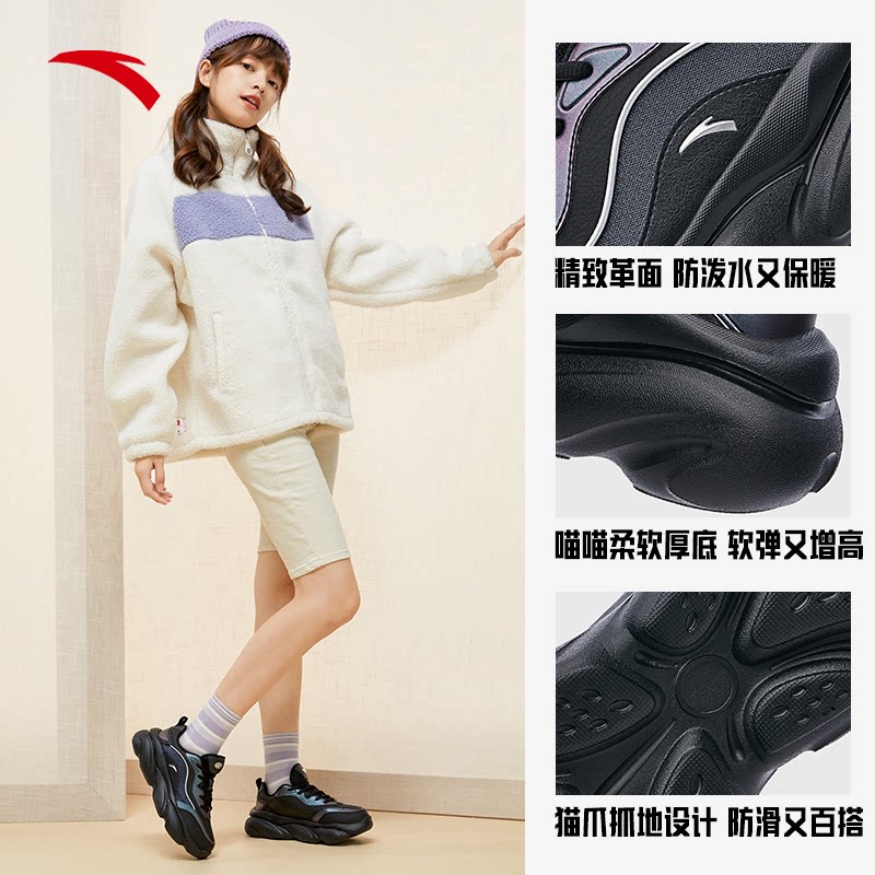 天猫安踏女鞋老爹鞋女2026新款喵喵鞋春季爆款黑色保暖运动鞋休闲鞋子