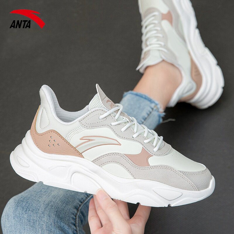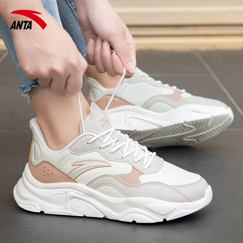 天猫安踏小千禧女鞋运动休闲鞋轻便透气系带跑步鞋潮流皮面低帮正品鞋