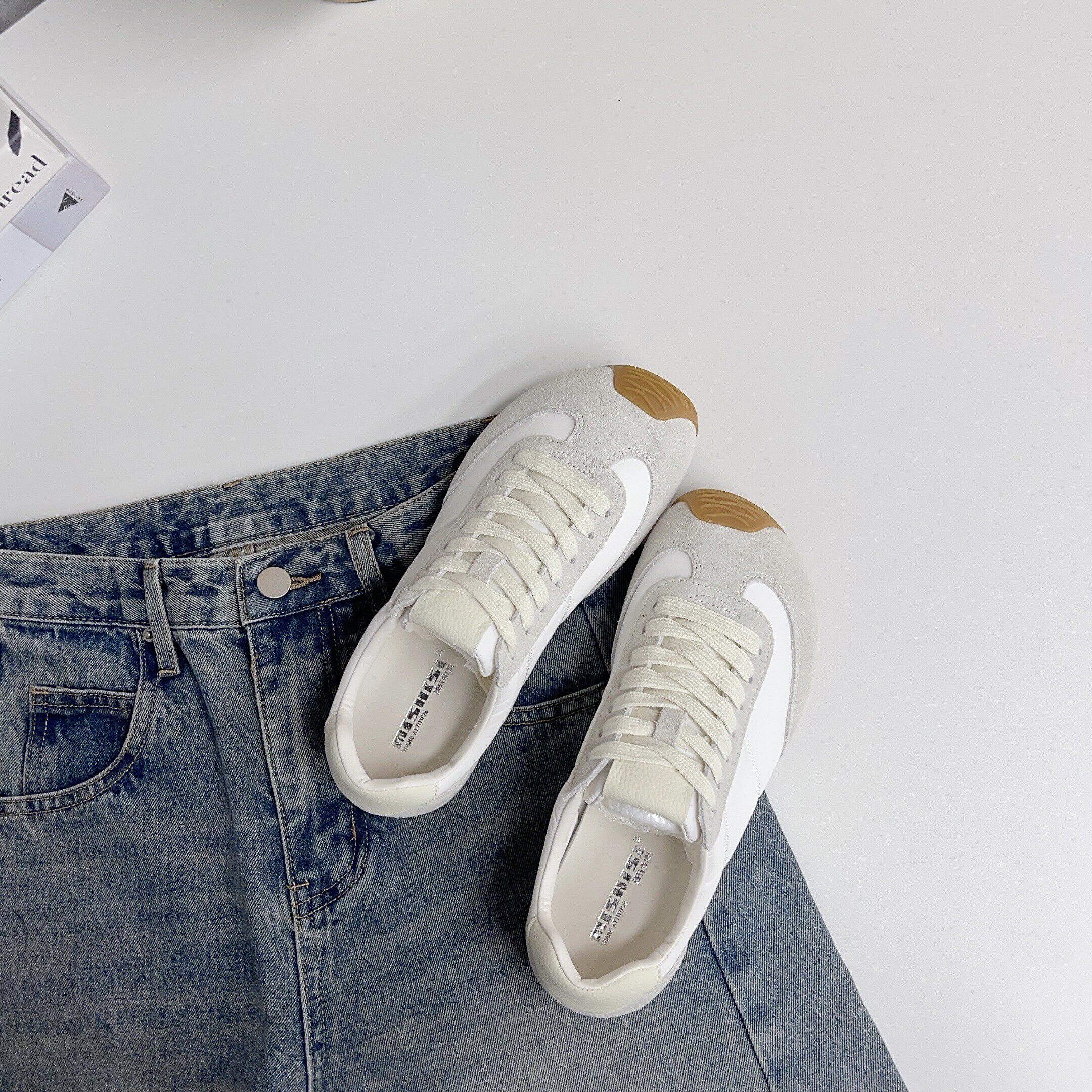 2026年新款韩系真皮休闲女鞋,融合经典德训鞋与阿甘鞋设计精髓,打造百搭时尚平底运动板鞋。采用优质真皮材质,质感细腻,透气舒适,经久耐穿。简约流畅的线条搭配复古撞色设计,轻松驾驭通勤、出游等多种场合。系带款式贴合脚型,稳固不磨脚,平底设计兼顾舒适与轻盈步伐。无论是搭配牛仔裤、连衣裙还是休闲套装,都能展现韩系清新文艺范。兼具潮流感与实用性,是本季不可错过的百搭单品,为日常穿搭增添一抹优雅与活力。