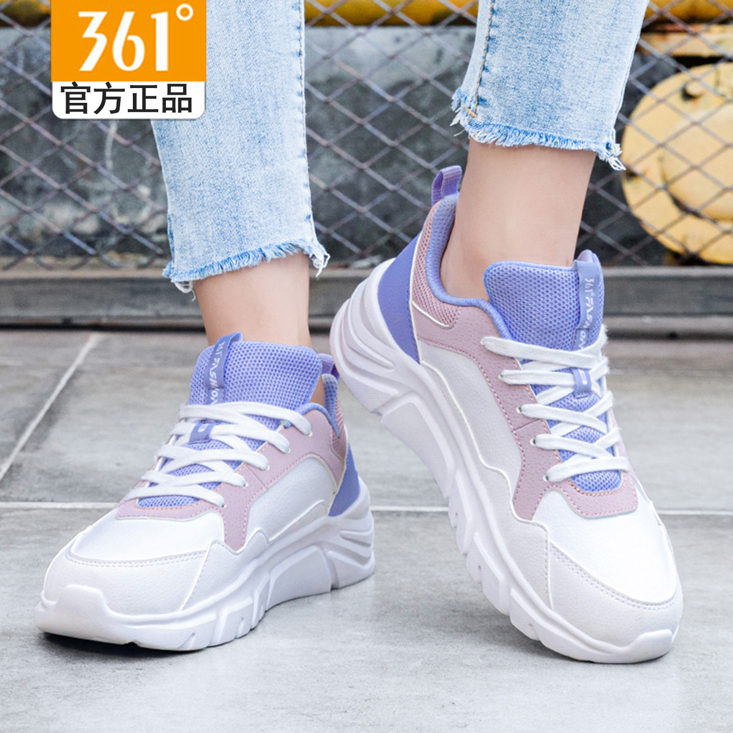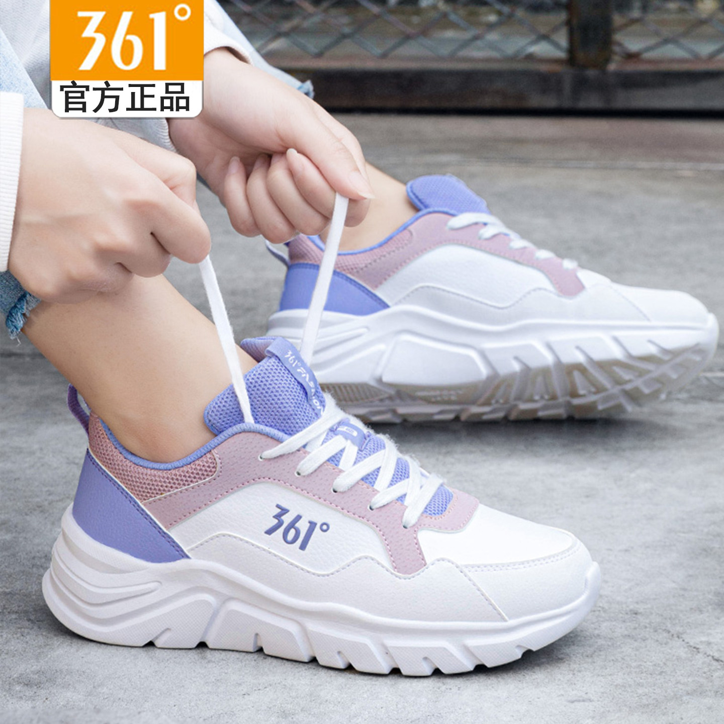 天猫361度皮面女鞋运动鞋春秋款女生旅游休闲鞋361正品老爹鞋防水鞋子