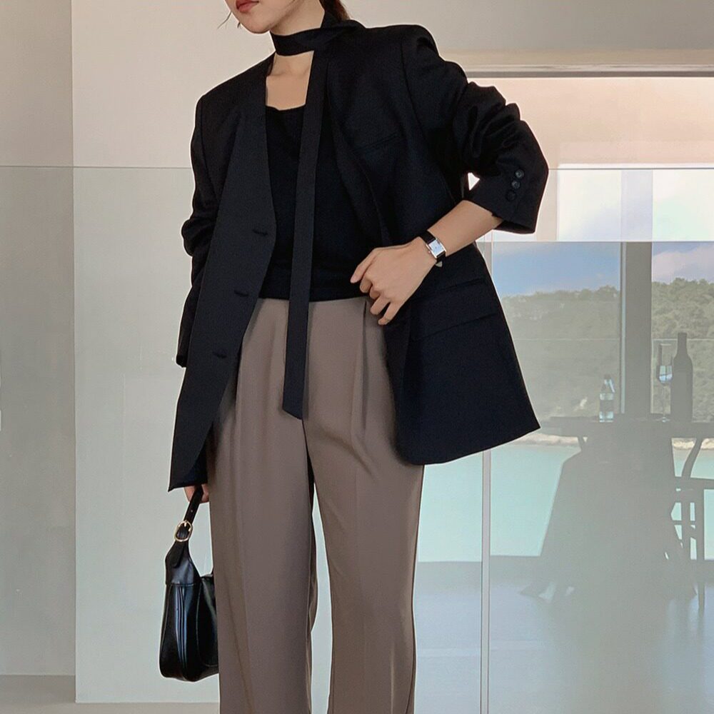 2025秋新款韩版时尚高级感V领飘带小西装外套,以简约利落的剪裁融合精致细节,展现女性优雅气质。采用宽松廓形设计,搭配立体垫肩,轻松塑造挺拔身形,兼顾舒适与气场。V领设计拉长颈部线条,胸前飘逸的飘带点缀,增添柔美灵动感,彰显独特时尚品味。精选高品质面料,垂坠有型,触感顺滑,适合通勤、约会或休闲多种场合。整体造型兼具韩系简约与高级质感,是今秋衣橱不可或缺的百搭单品,轻松穿出自信与格调。