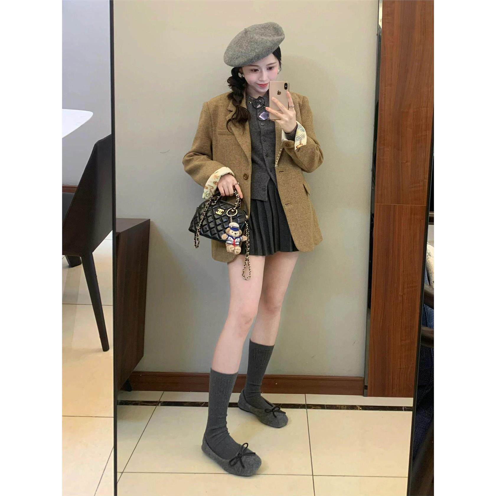 韩国chic秋季新款法式高级感一粒扣宽松休闲百搭长袖西装短外套女