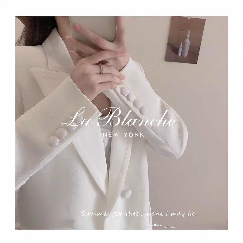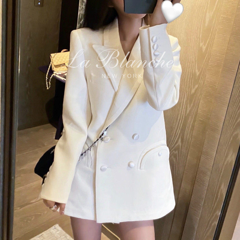 淘宝网红秋季新款小西装外套女士西服韩版气质厚款英伦白色轻奢中长款