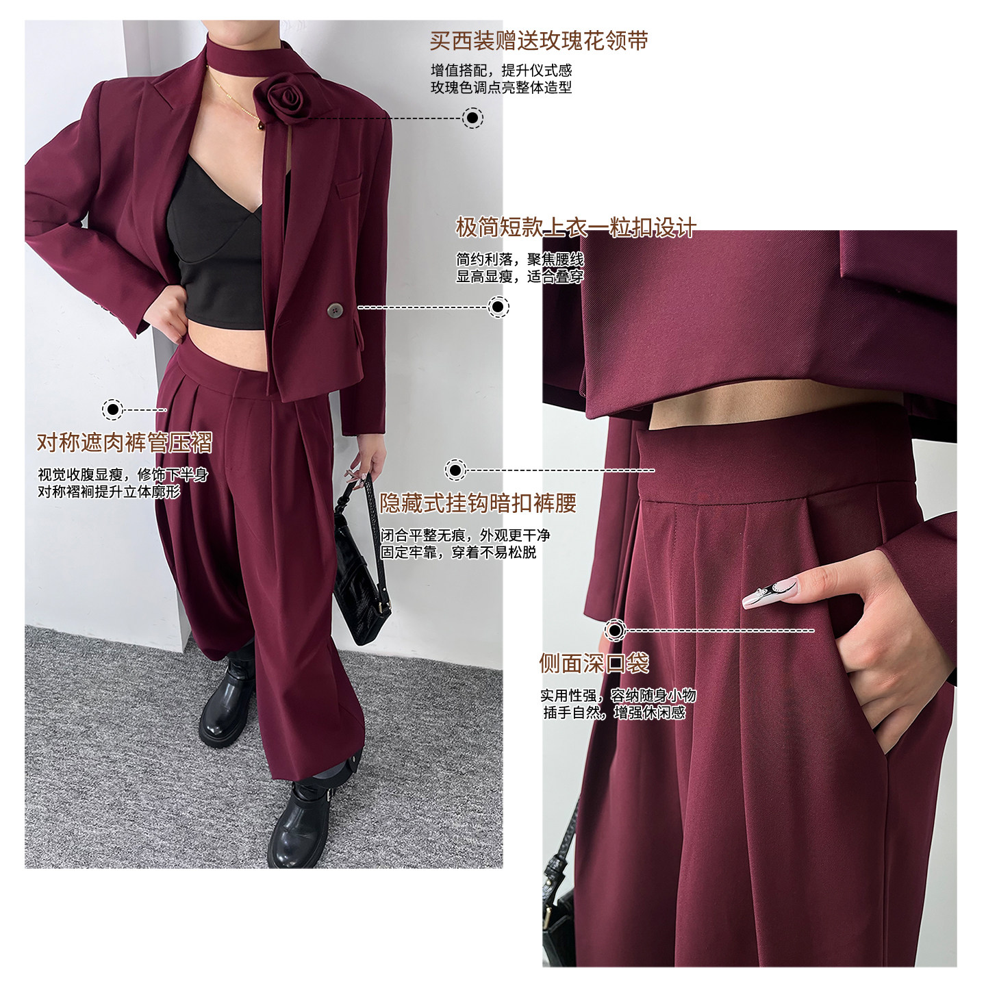 天猫职场轻奢西装套装女春秋季马夹阔腿裤三件套休闲绑带面试装小西服
