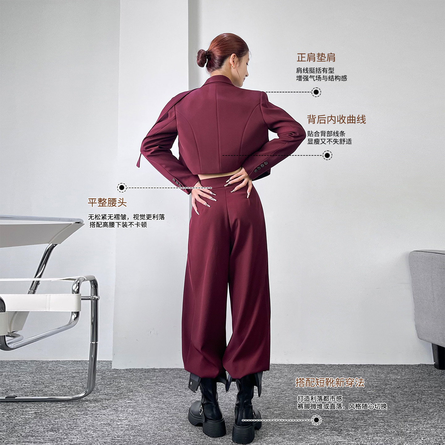 【含羊毛】Scofield女装飒美高腰阔腿西装裤金属扣
