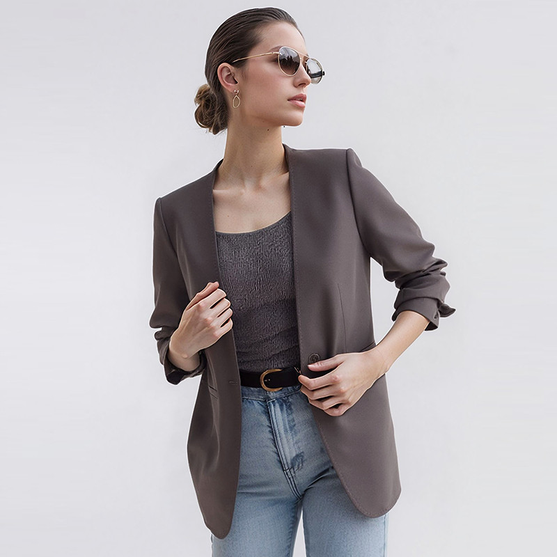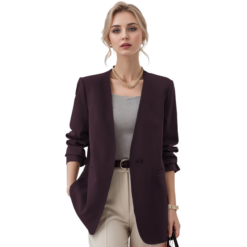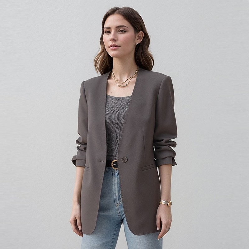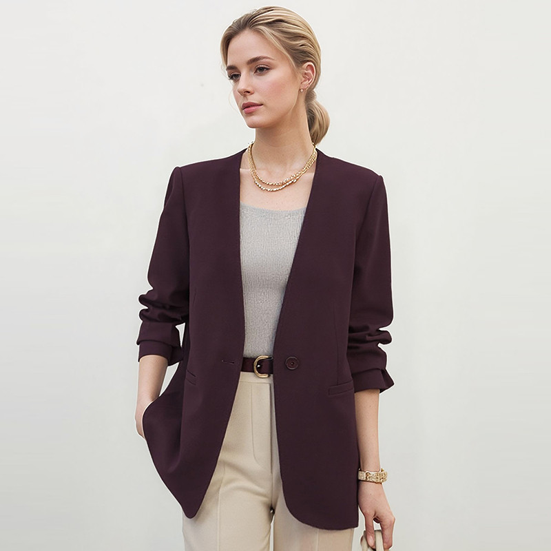 璐丝百丽2026新款女士西装外套,以简约无领设计诠释现代职场女性的干练与优雅。采用高品质垂感面料,剪裁利落合身,长袖版型修饰手臂线条,凸显气质与知性魅力。摒弃传统领型束缚,搭配流畅肩线与微收腰设计,既保留职业装的严谨,又融入时尚商务元素,轻松驾驭通勤、会议与日常办公场景。多色可选,易于搭配衬衫、针织衫或连衣裙,展现多变风格。细节处注重品质,走线工整,纽扣精致,彰显品牌匠心。璐丝百丽以简约不简单的设计理念,为都市女性打造兼具舒适与气场的理想职业装束,是2026年职场穿搭的时尚之选。