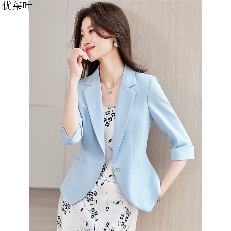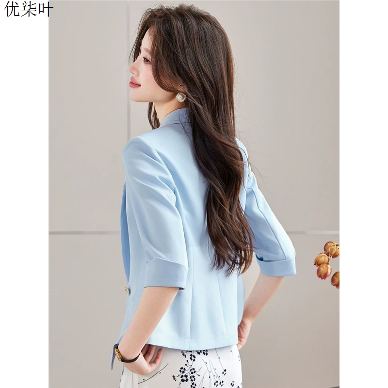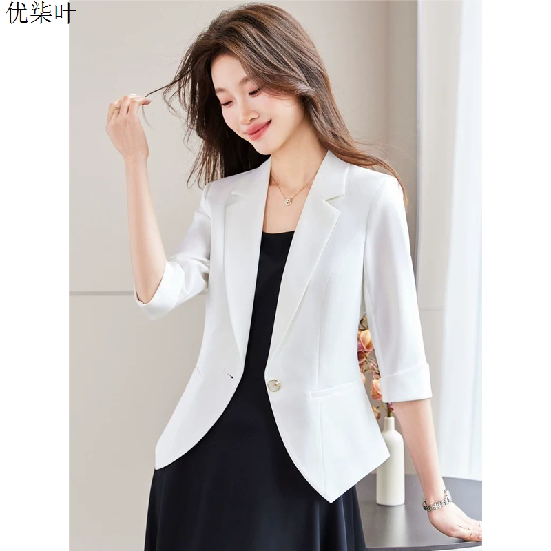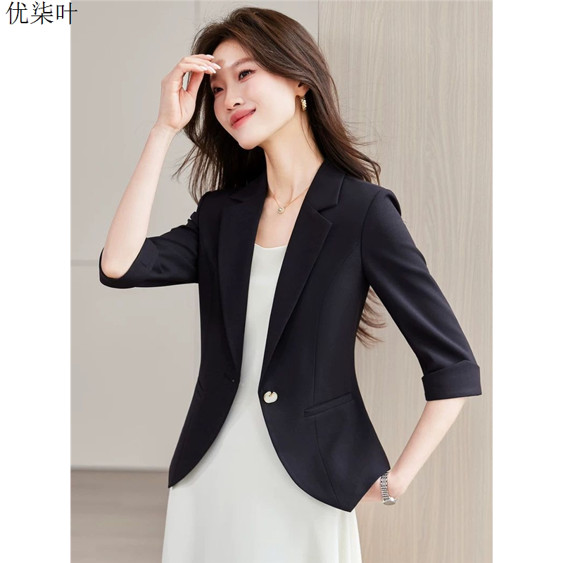 淘宝黑色中袖七分袖西装外套女薄2026年春夏新款气质休闲职业西服上衣