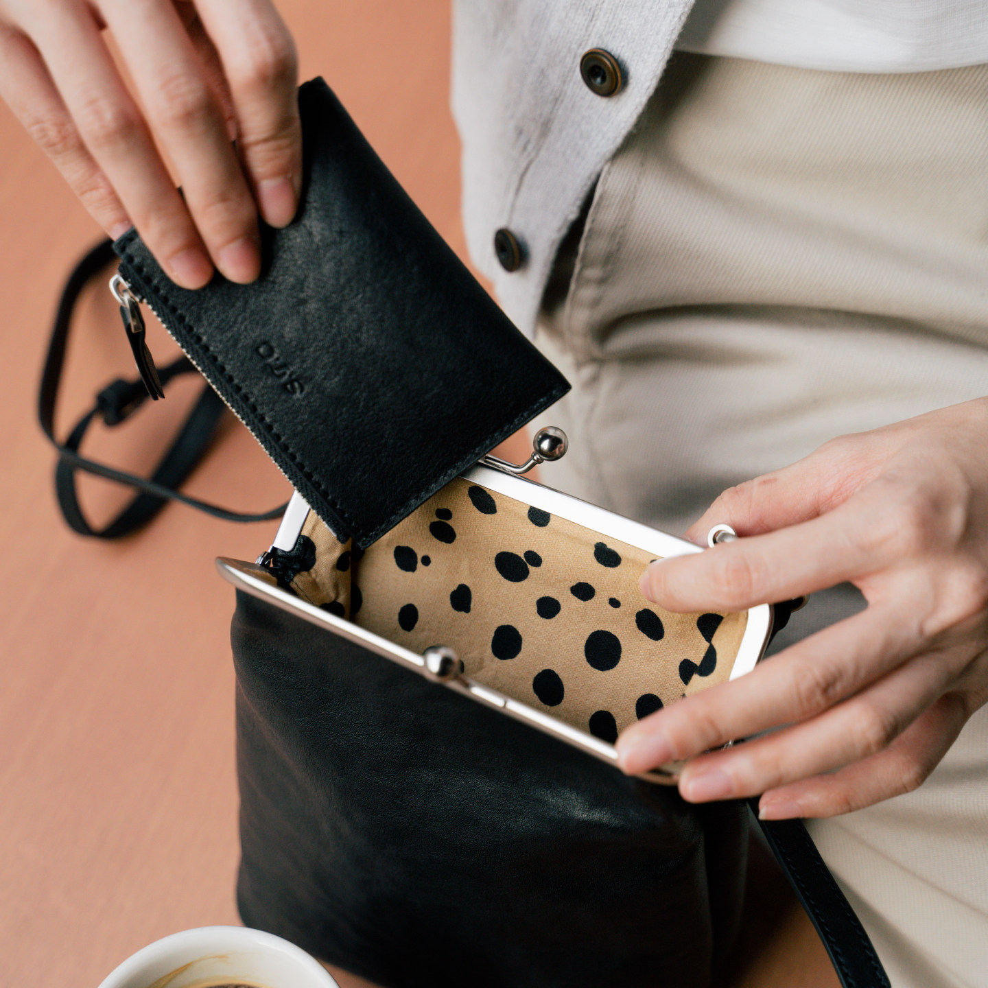 淘宝SUPERTOFU 头层植鞣牛皮 压印logo豹纹内衬 卡夹零钱包二合一