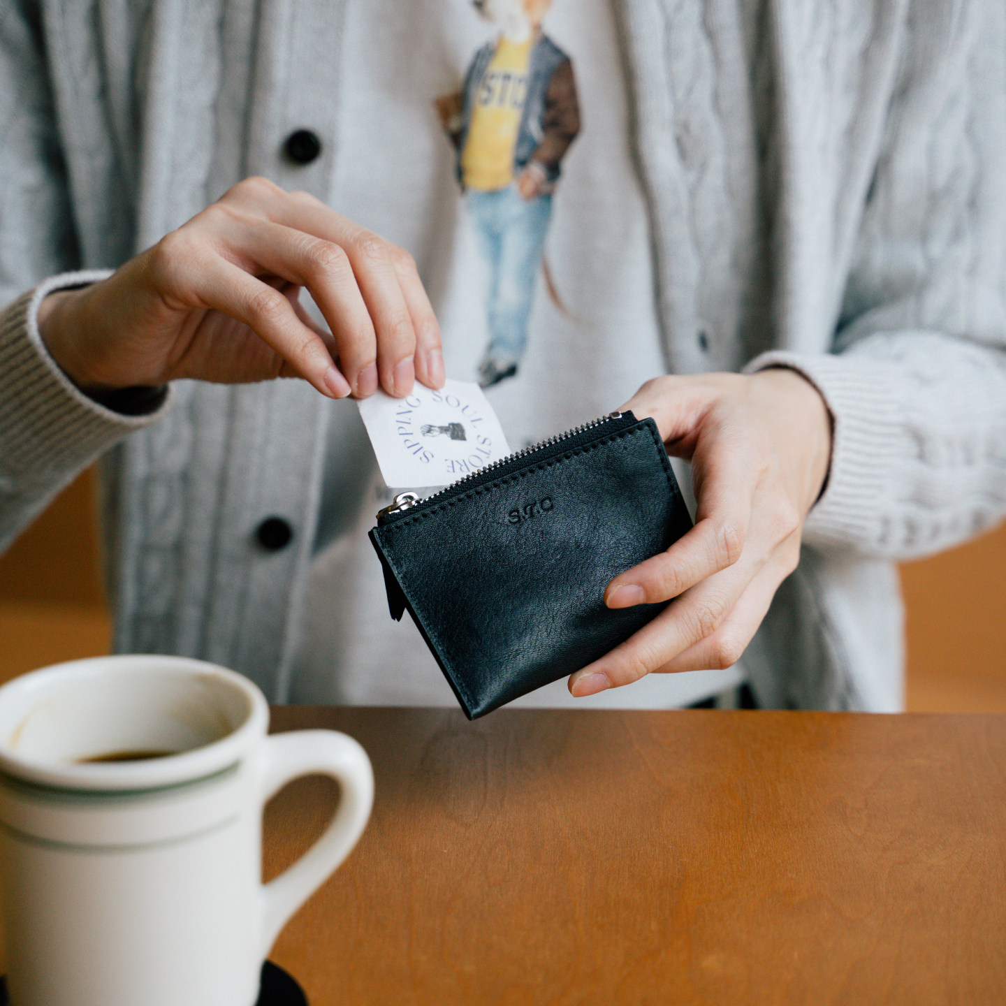 SUPERTOFU 头层植鞣牛皮 压印logo豹纹内衬 卡夹零钱包二合一