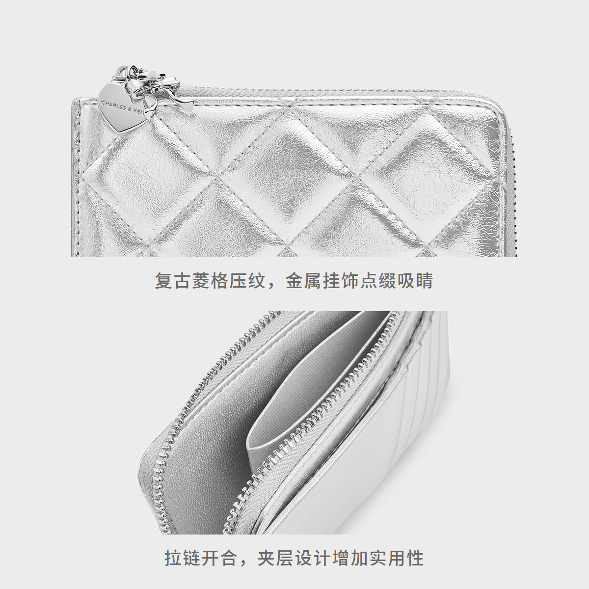 天猫CHARLES&KEITH春季女包CK6-50770711金属包挂拉链菱格零钱包卡包