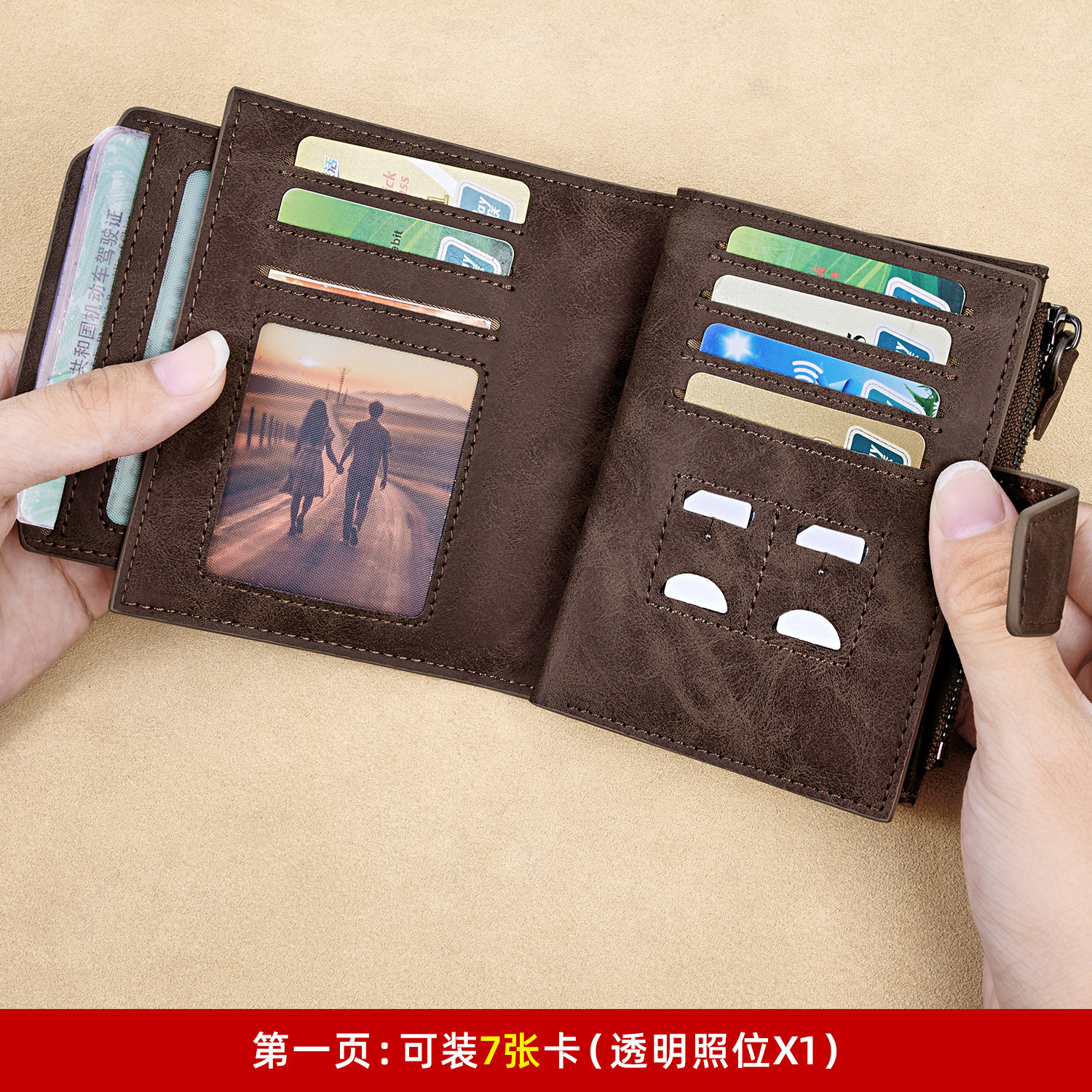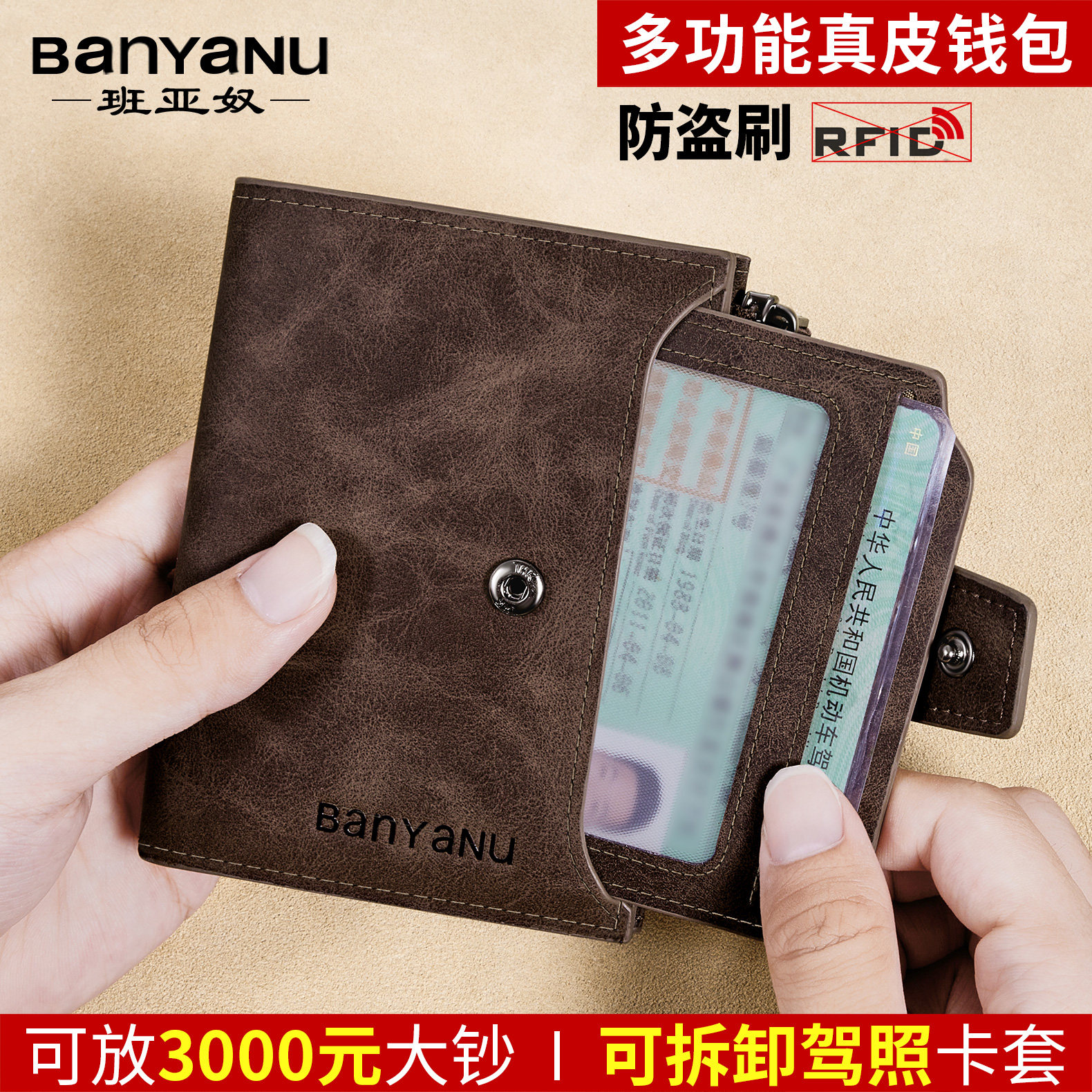 淘宝班亚奴钱包男短款真皮男士多卡位皮夹牛皮拉链零钱位独立卡包钱夹