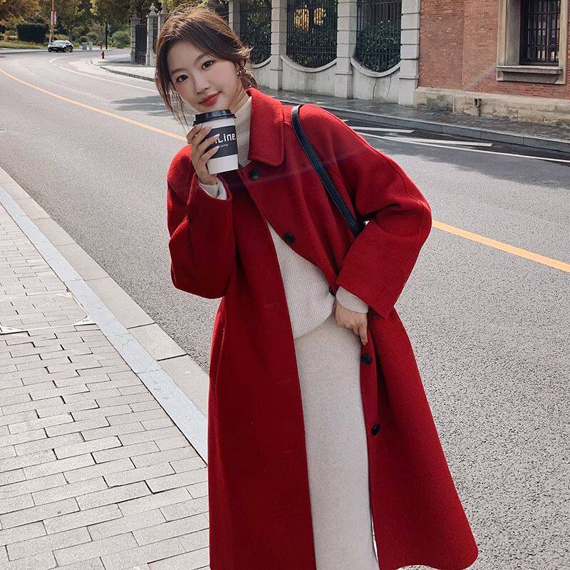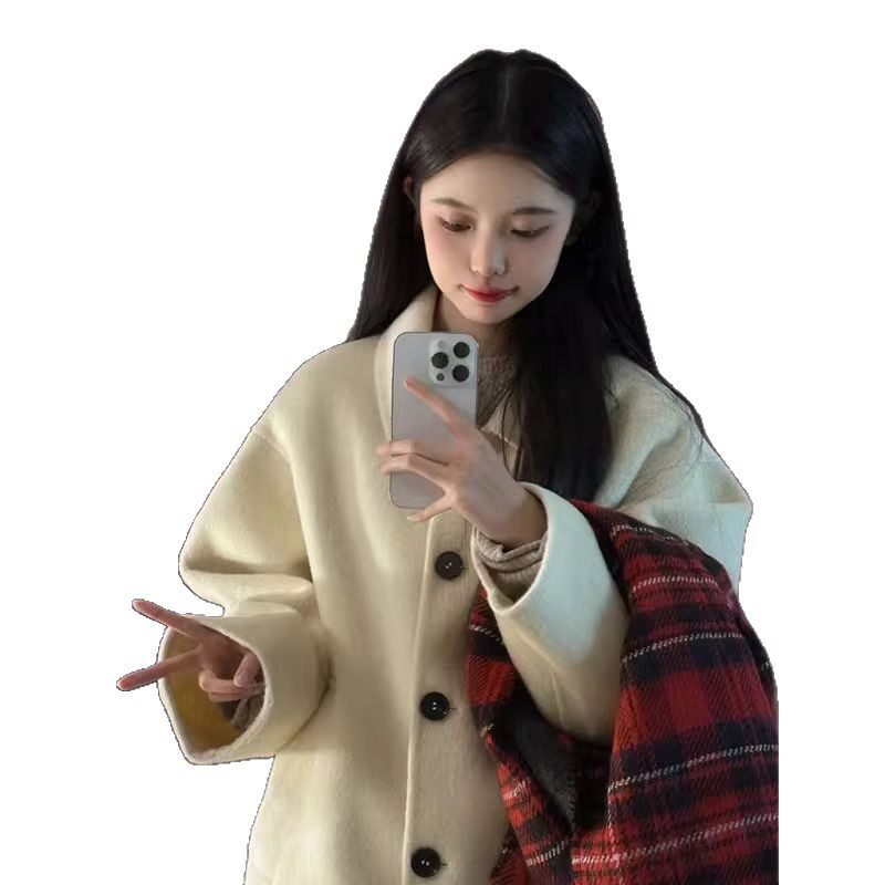 淘宝爆款黄色娃娃领毛呢大衣女2025秋冬新款韩版加厚中长款呢外套