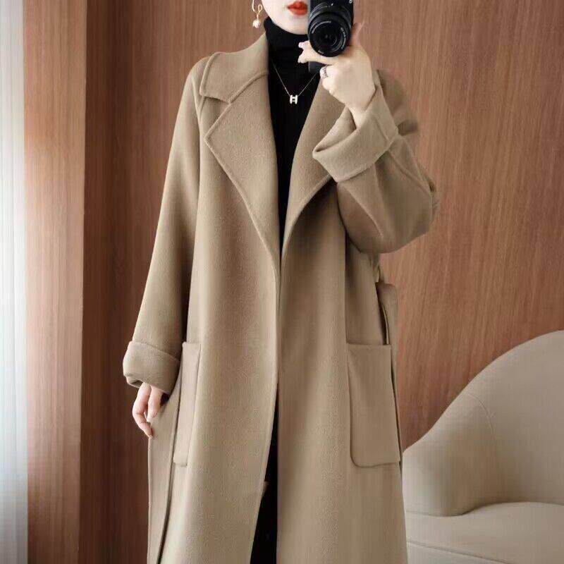 时然大码微胖MM26年冬季慵懒羊毛双面呢显瘦毛呢西装长款大衣外套