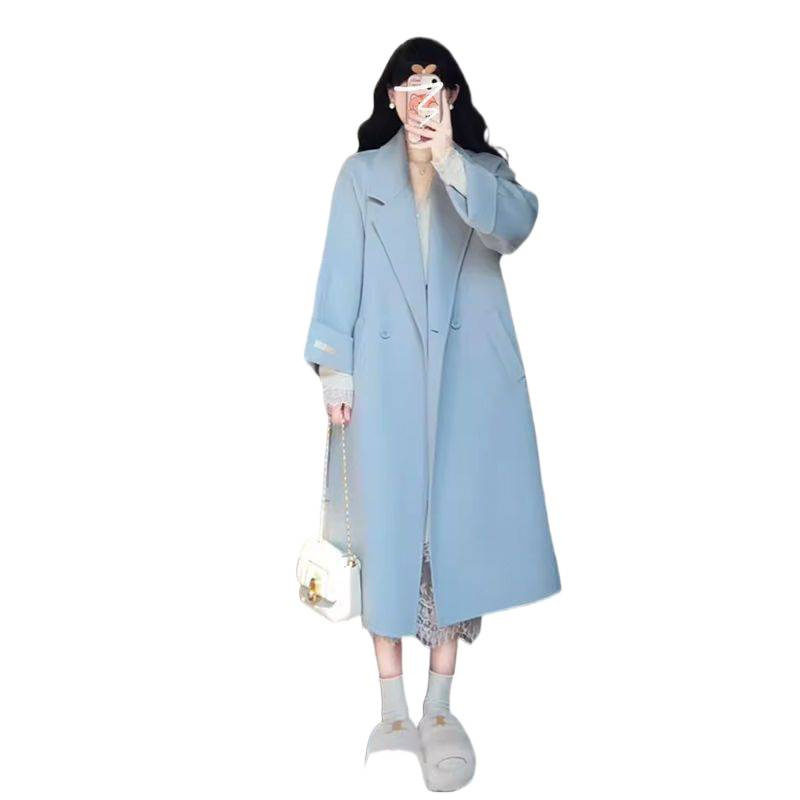 淘宝骄阳似我聂曦光赵今麦同款蓝色呢子大衣女秋冬小个子中长毛呢外套