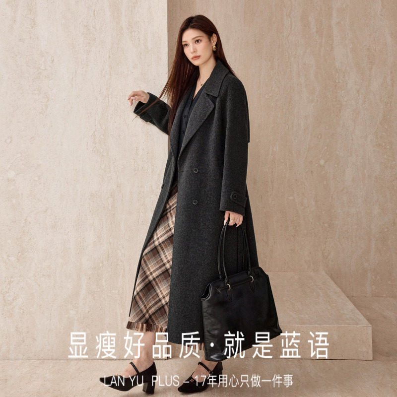 天猫蓝语大码高级感全羊毛灰色双面呢大衣2025冬气质轻奢毛呢子外套女