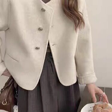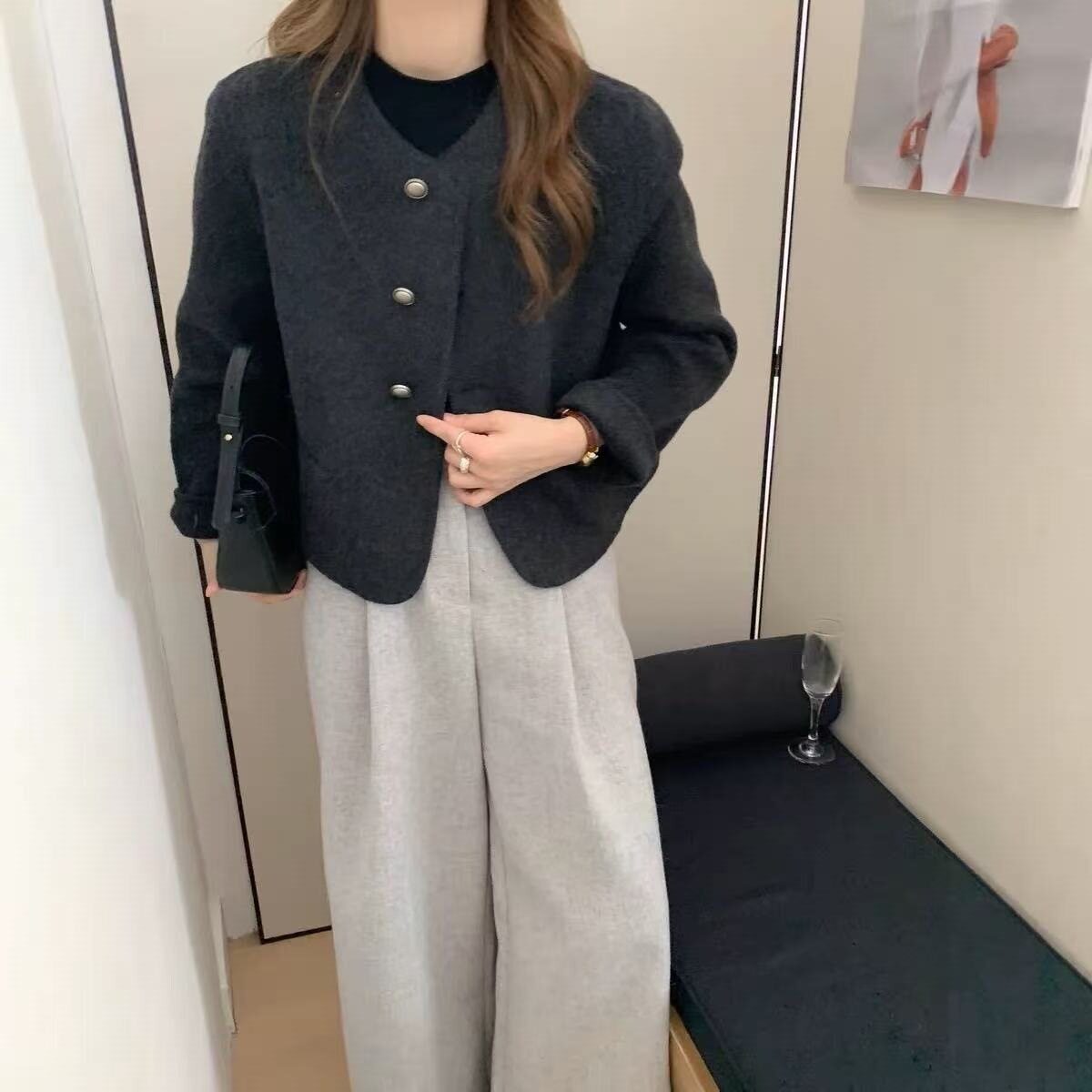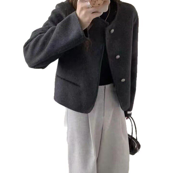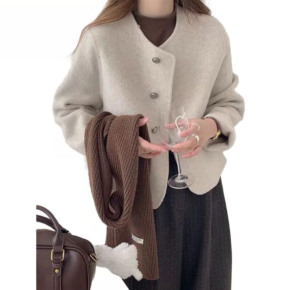 淘宝YTMCC小香风外套女双面羊毛大衣女短款小个子简约通勤圆领宽松