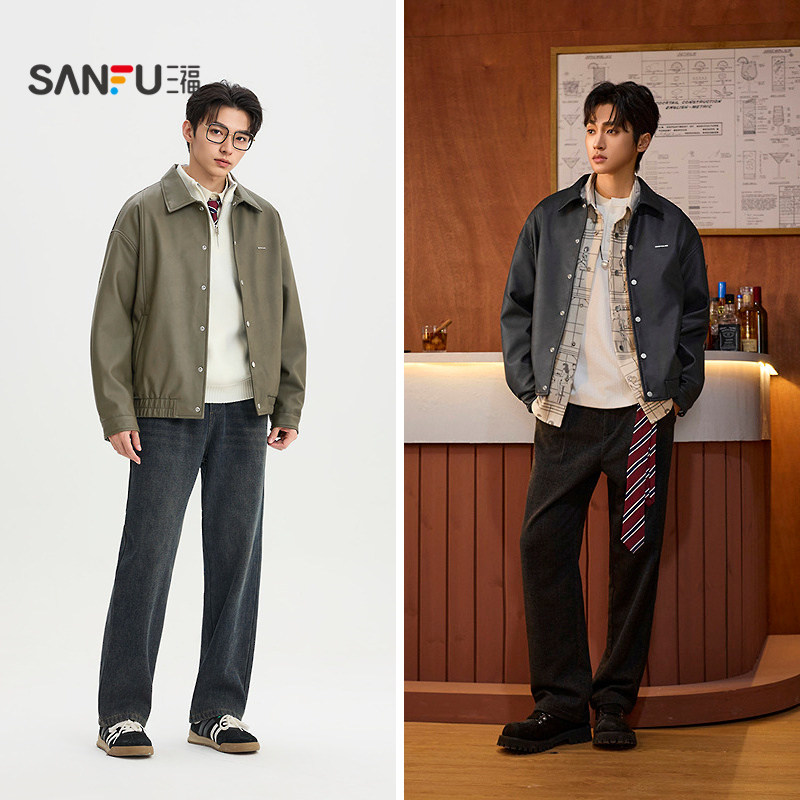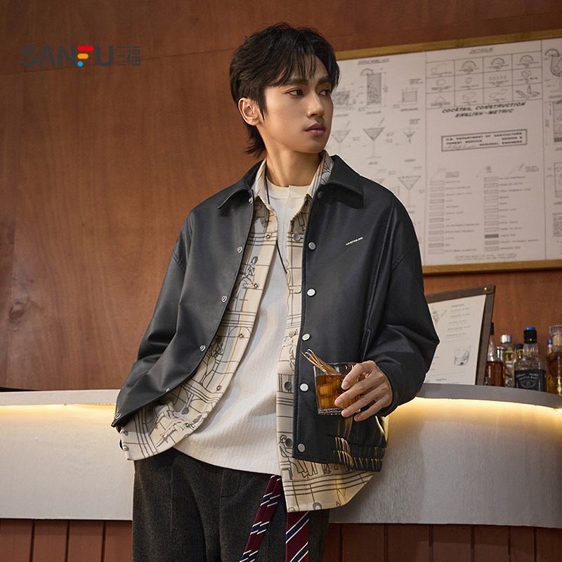 三福2026春季新款时尚钢标PU皮衣夹克(货号:516510),专为都市型男打造,融合潮流与实穿性。采用高品质PU皮革,质感细腻、挺括有型,兼具环保与耐用特性。宽松剪裁设计,穿着舒适自在,轻松驾驭多种体型。经典翻领搭配暗扣开合,简约利落,凸显低调酷感。胸前金属钢标点缀,提升整体设计感与品牌辨识度。多口袋实用布局,兼顾美观与功能性。无论是搭配卫衣、T恤或衬衫,都能轻松打造街头休闲或轻熟风格,是春季衣橱的百搭单品,展现型格魅力。
