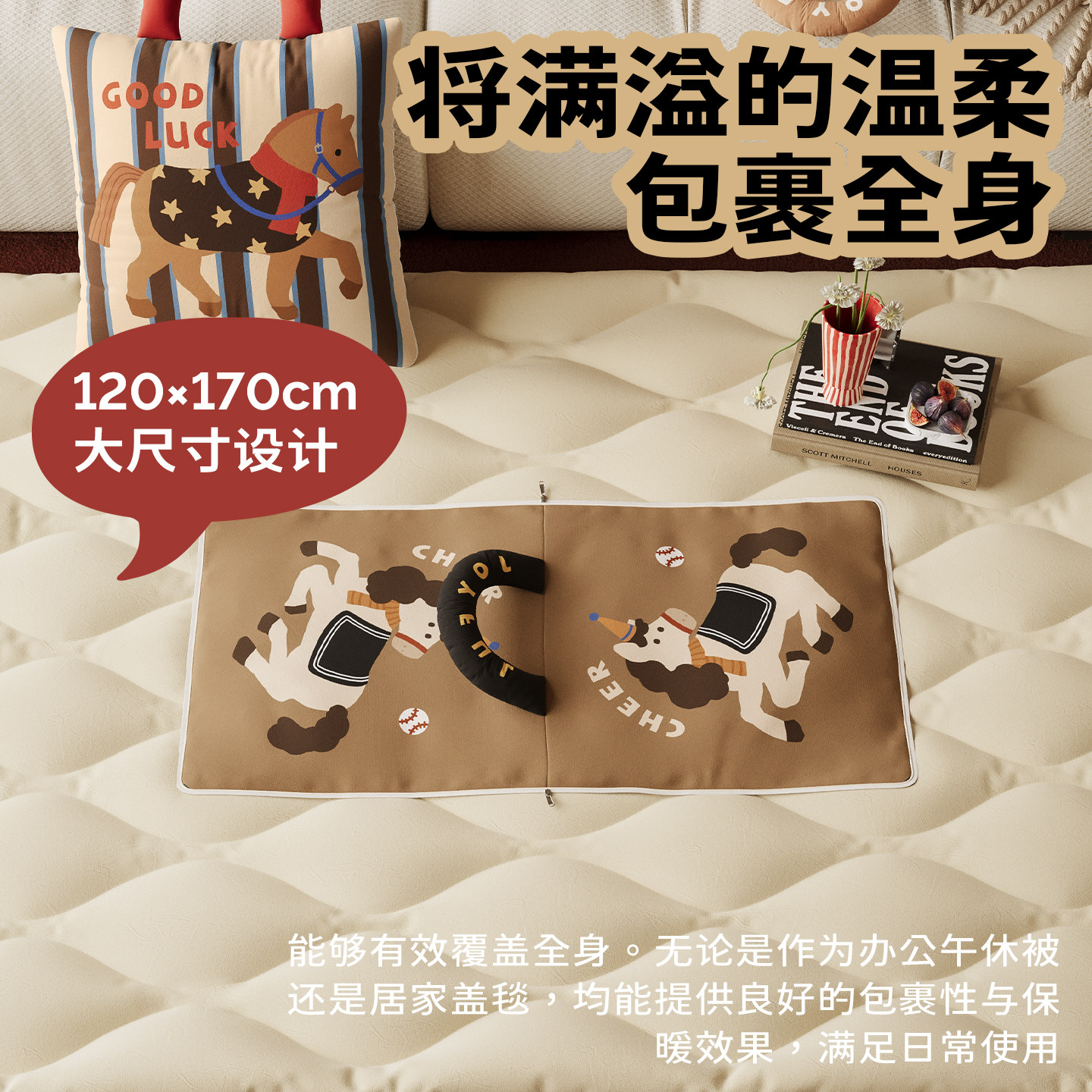 御尚居马年抱枕被子两用2026新款,集实用与美观于一体,是居家、办公、出行必备好物。采用优质亲肤面料,内里加厚填充,柔软保暖,四季皆宜。巧妙二合一设计,展开为舒适盖毯,折叠即成抱枕,轻松应对办公室午休、车内小憩或居家休闲场景。马年限定图案寓意吉祥,精致刺绣彰显品质,既是贴心自用良品,也是走亲访友的体面礼物。轻便易携,可机洗不变形,满足现代人对便捷与品质的双重追求,让温暖与美好常伴左右。