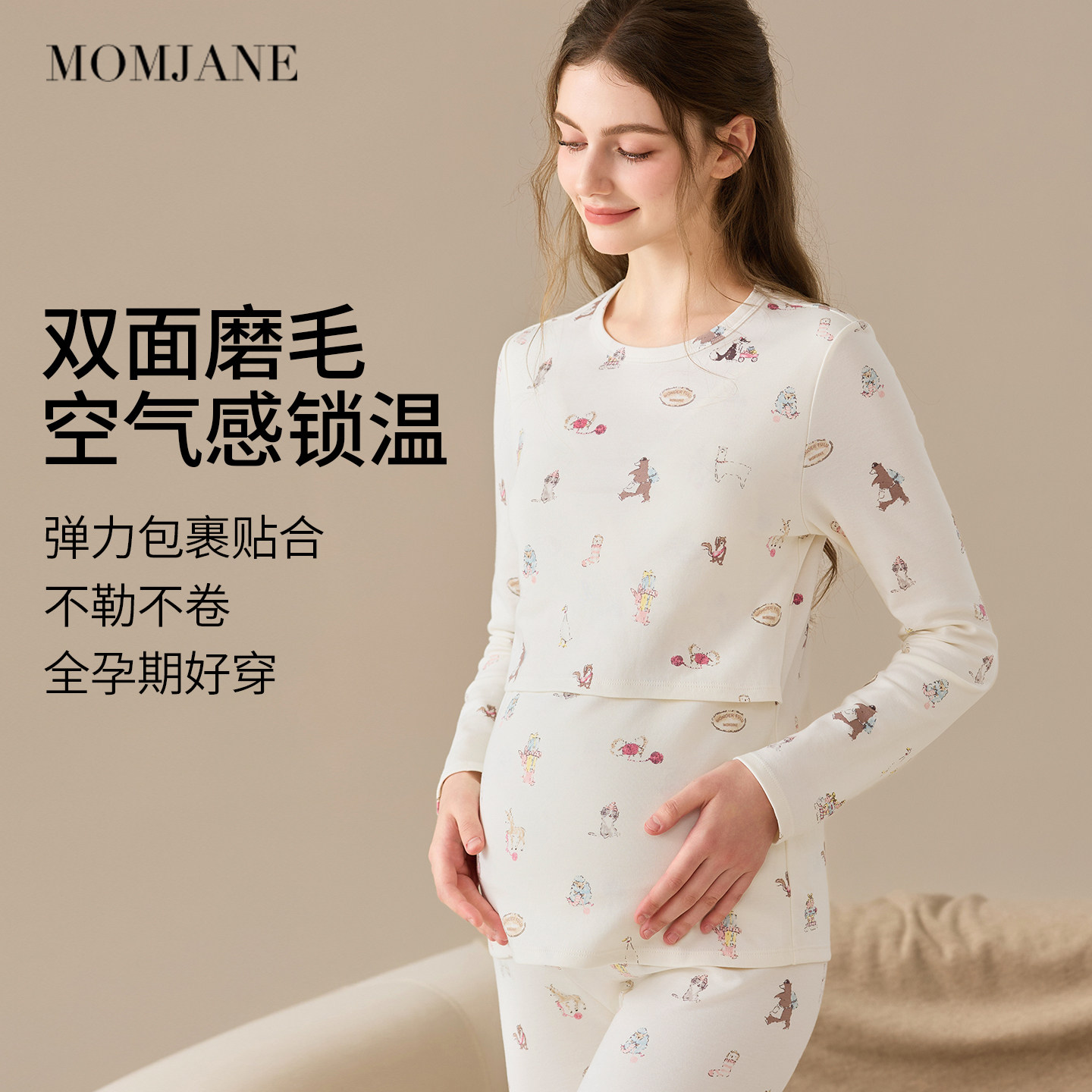 慕倩哺乳秋衣秋裤套装秋冬保暖带胸垫孕妇内衣孕期产后喂奶月子服