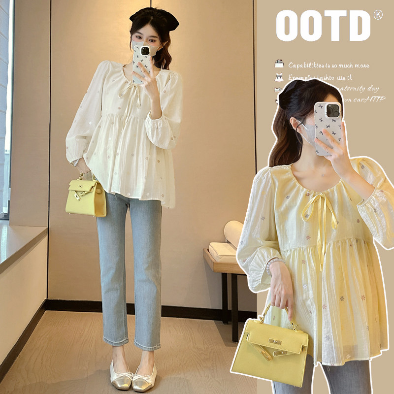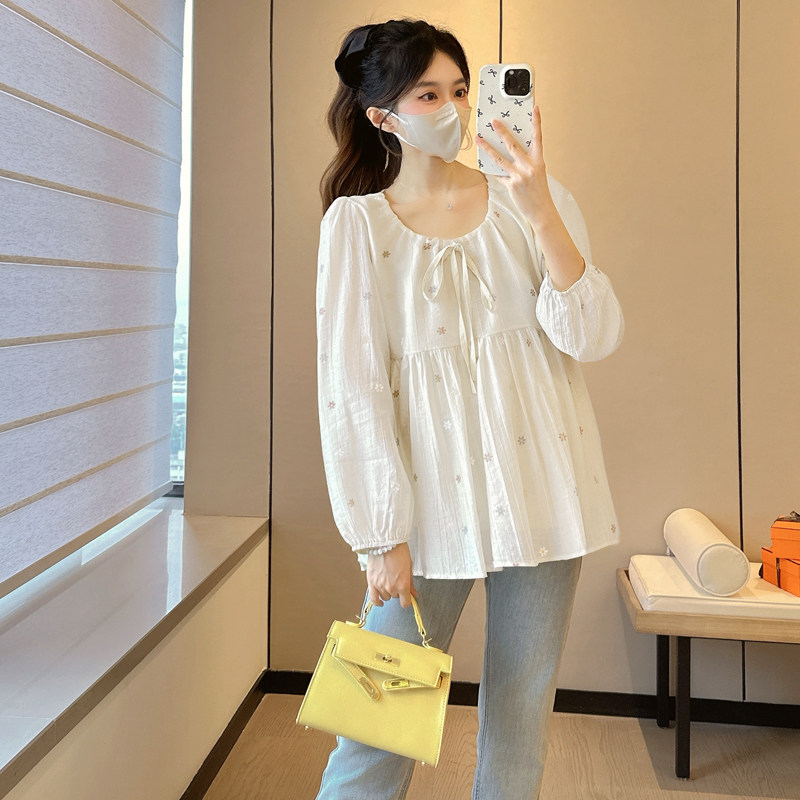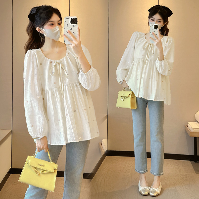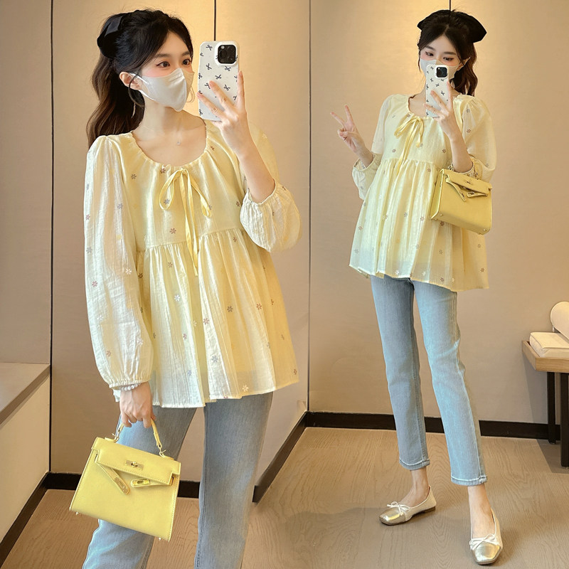 诺初孕妇装衬衫春季新款连衣裙哺乳宽松遮肚子娃娃衫上衣春秋衬衣