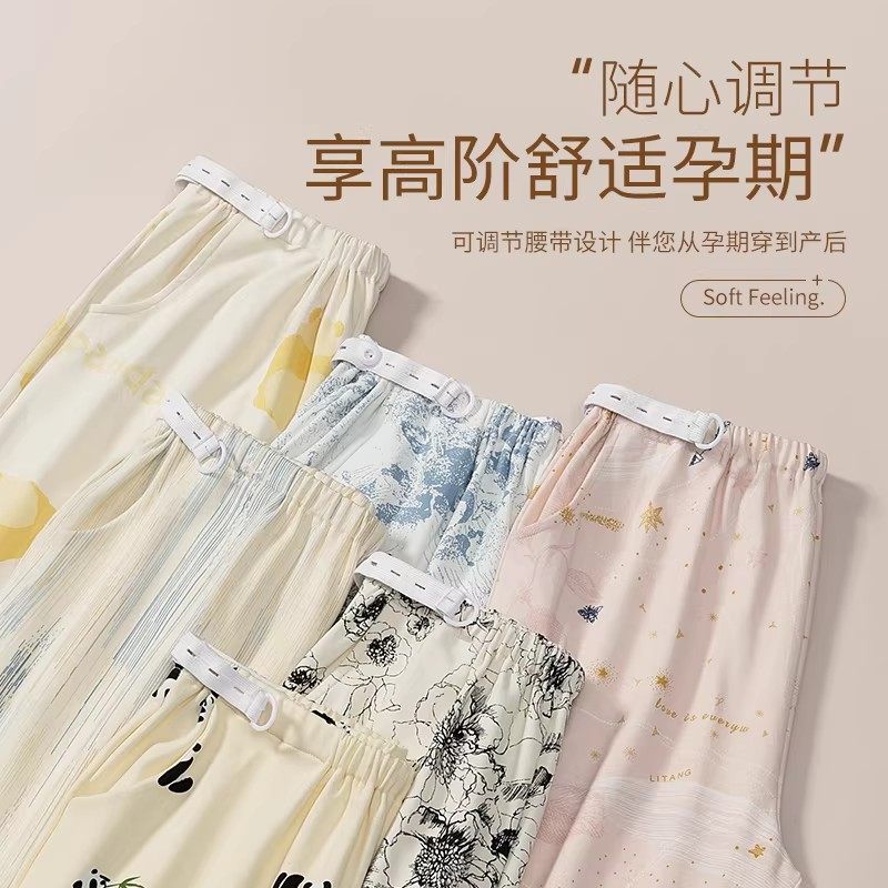 淘宝孕妇睡裤托腹裤纯棉春秋长裤宽松大码可调节月子产后家居裤可外穿