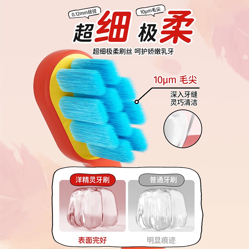 天猫洋精灵儿童牙刷0-3到6岁万根软毛乳牙期宝宝牙刷护齿专用口腔清洁
