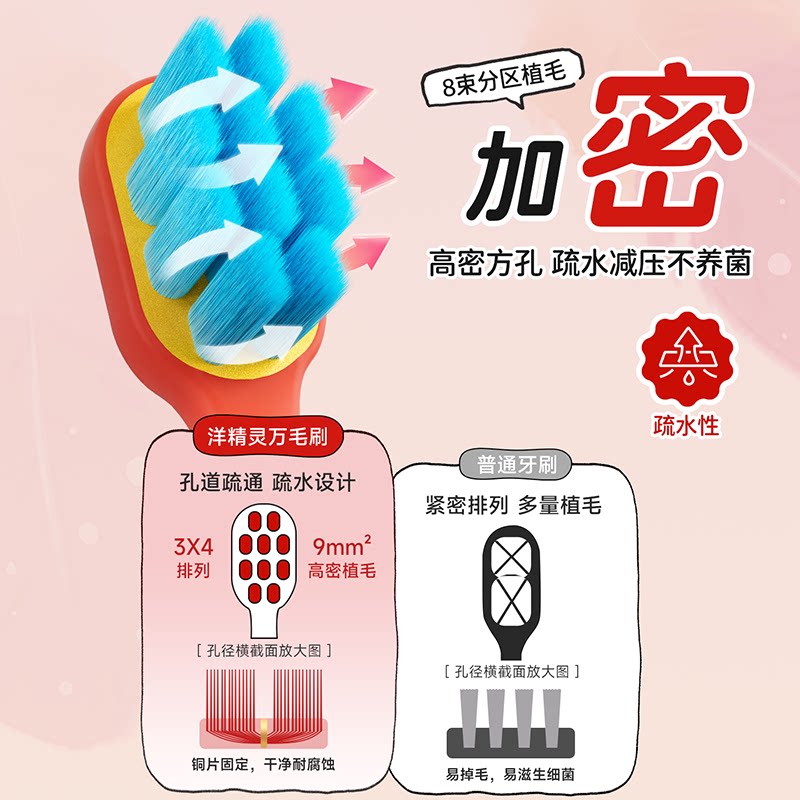 洋精灵万毛牙刷成人超软毛护齿护龈柔密敏感家庭装家用