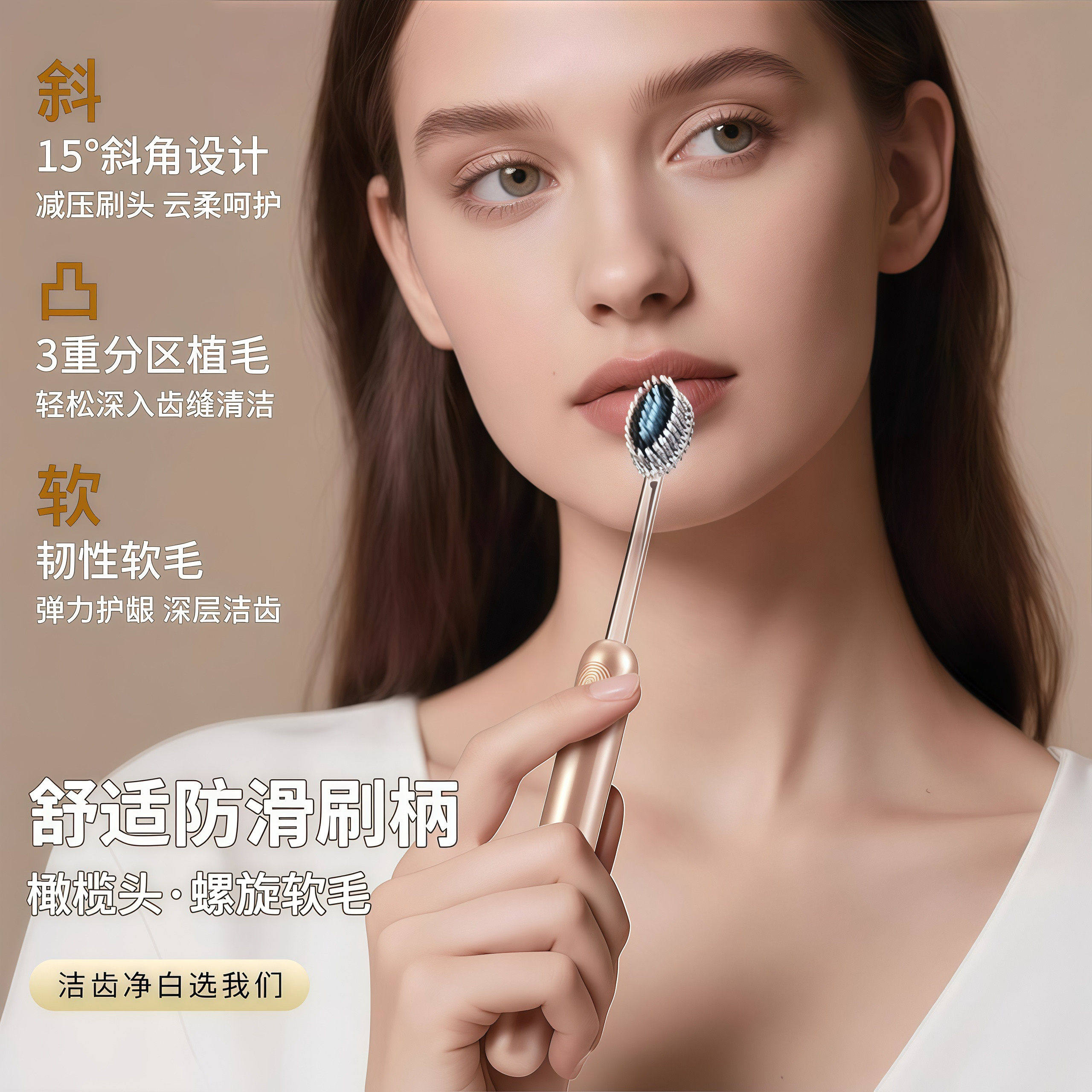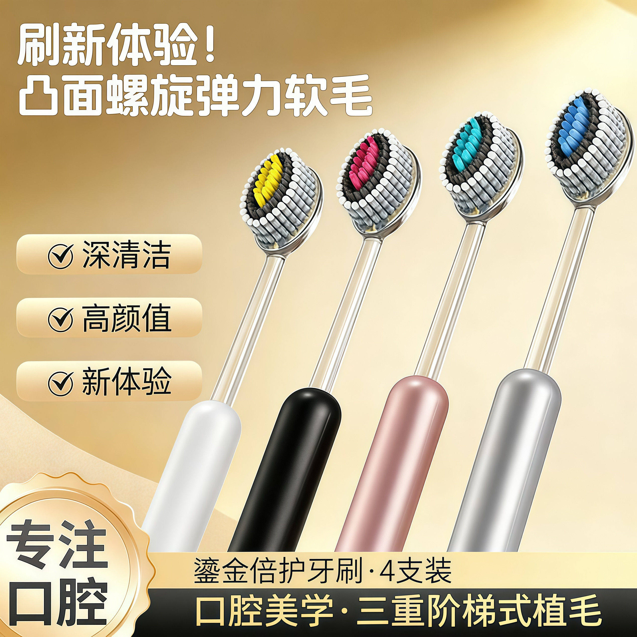 淘宝轻奢山型牙刷橄榄头螺旋弹力软毛高档护龈牙刷家用高颜值家庭装