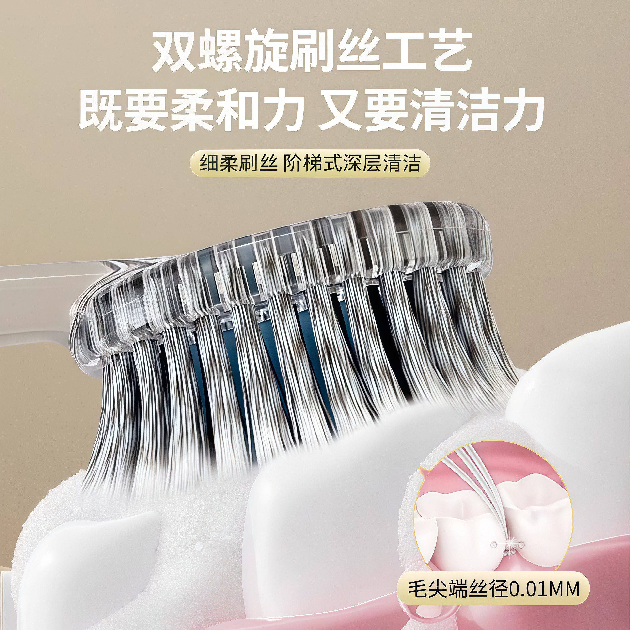 淘牙刷成人家用软毛超细抑菌螺旋刷丝祛烟渍牙渍美白牙齿男士专用